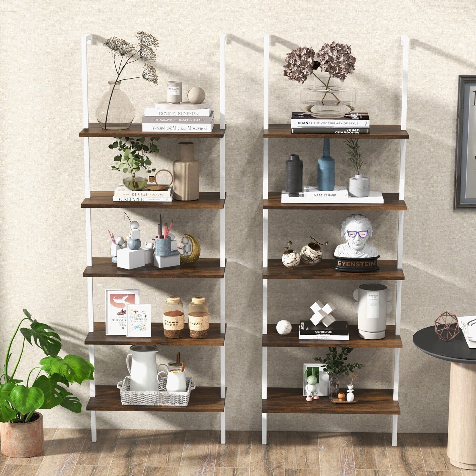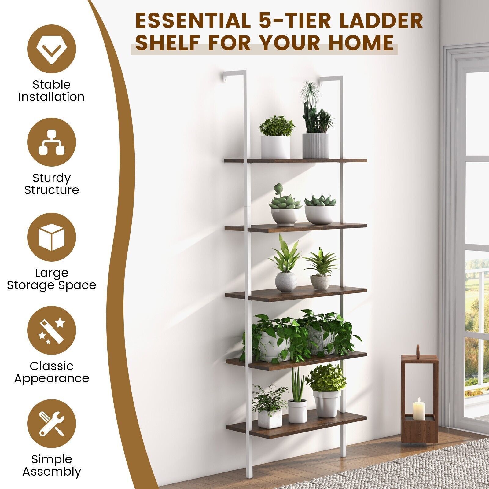 5-Tier Ladder Shelf Bookshelf Wall Mounted Storage Organizer Plant Display Rack