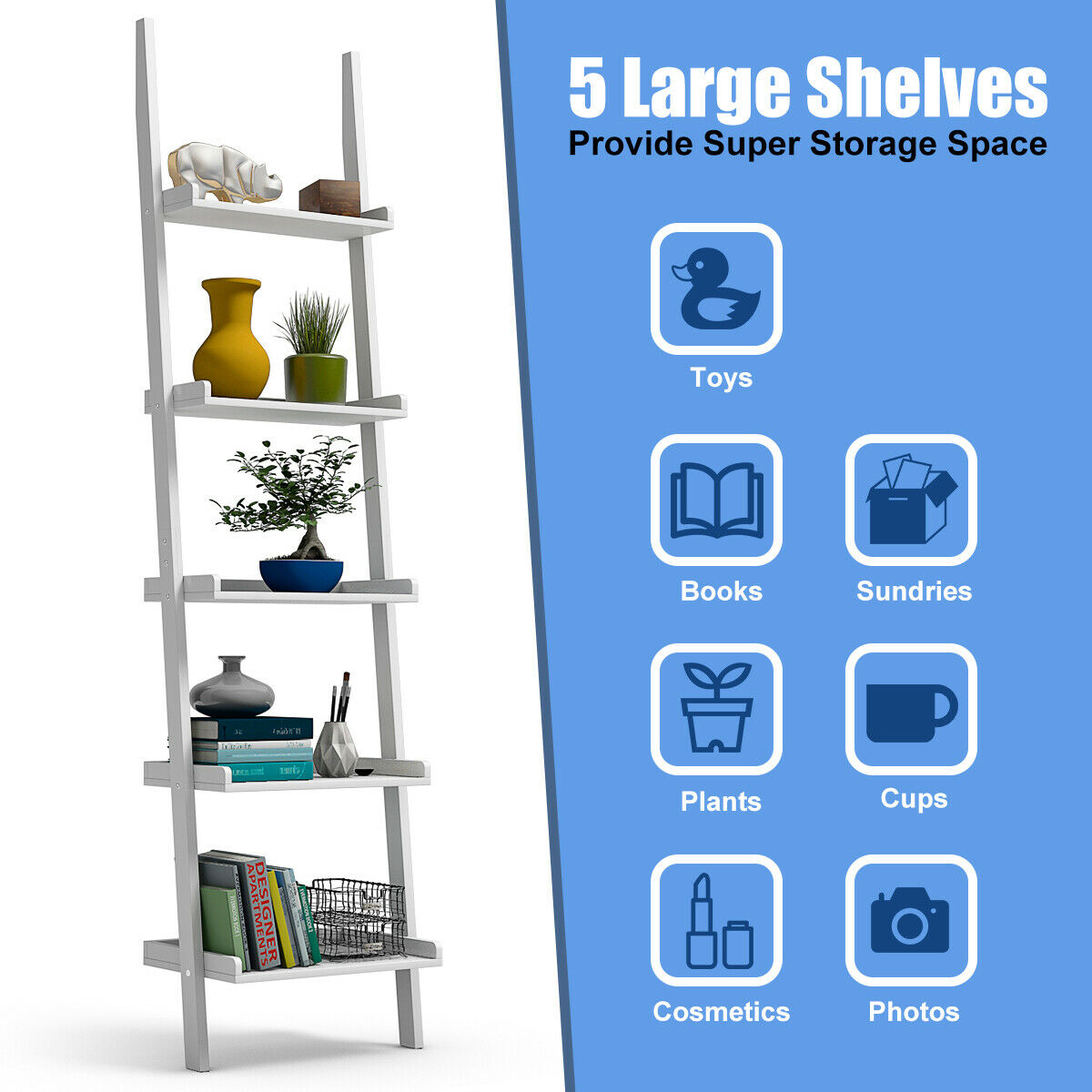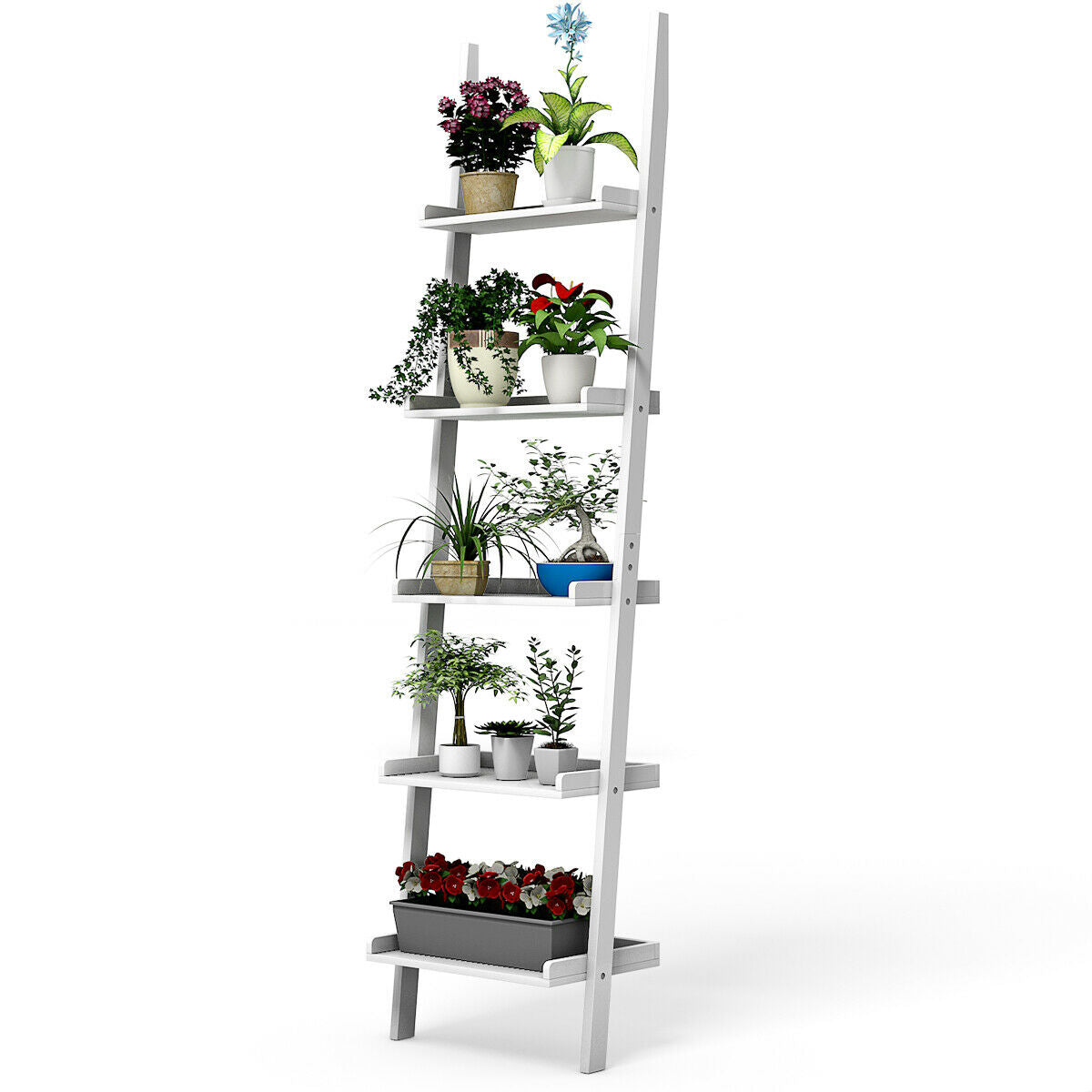 5-Tier Ladder Wall Shelf Home Display Storage Rack Bookcase Plant Flower Stand
