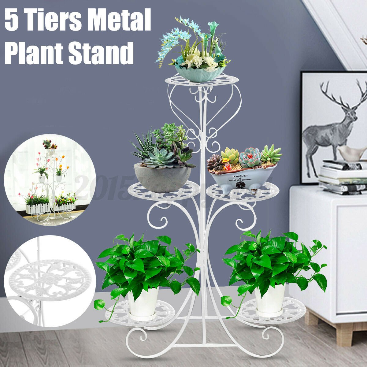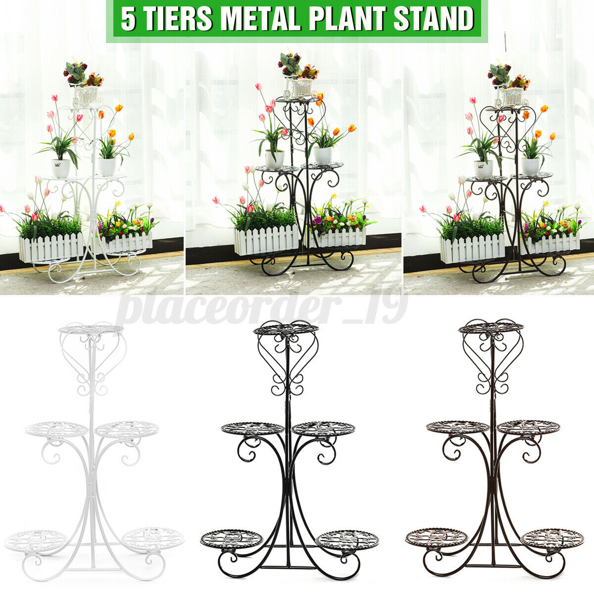 5 Tier Metal Plant Stand Flower Pot Rack Display Garden Patio Outdoor Indoo