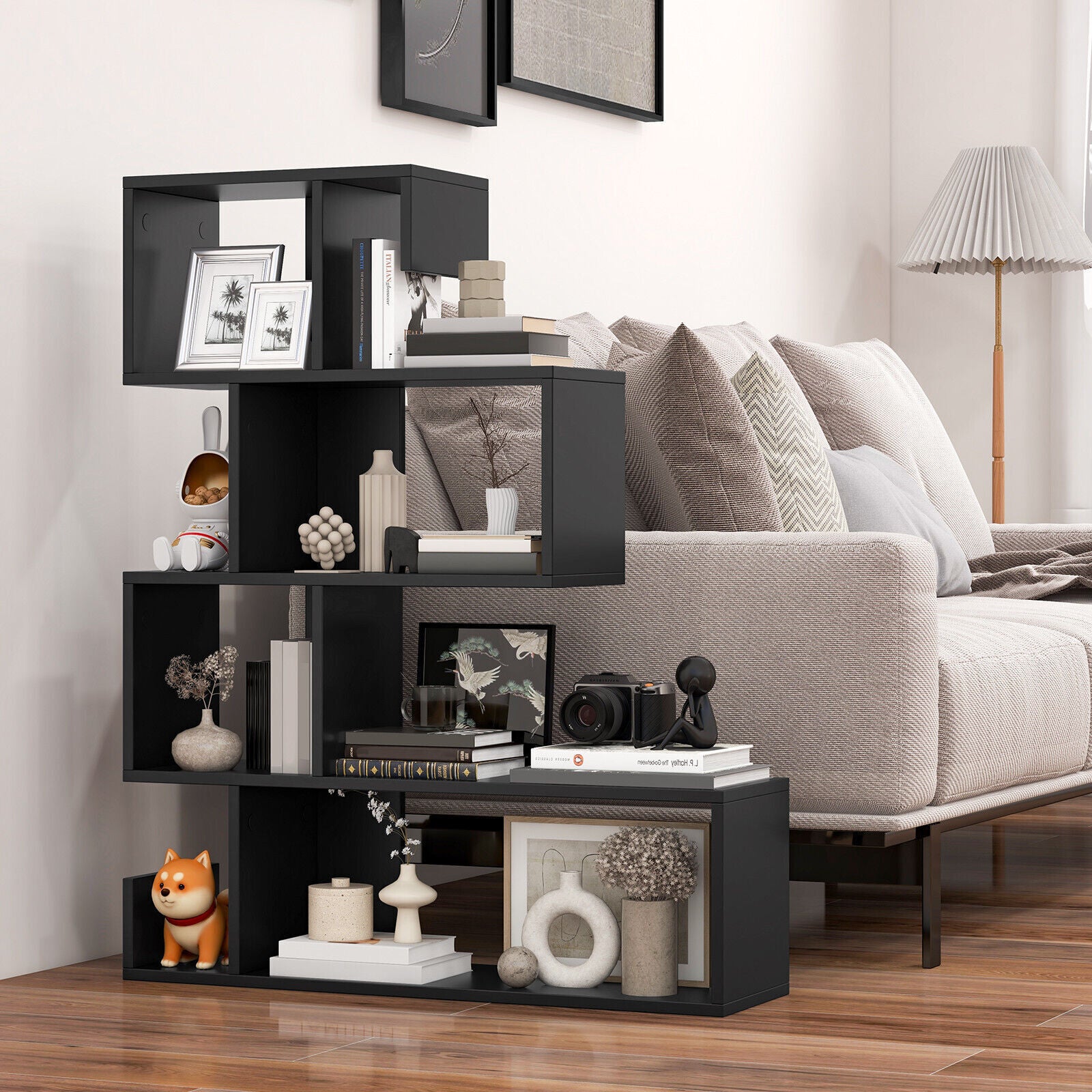 5-Tier S-Shaped Bookshelf Geometric Z-Shelf Bookcase Modern Display Shelf
