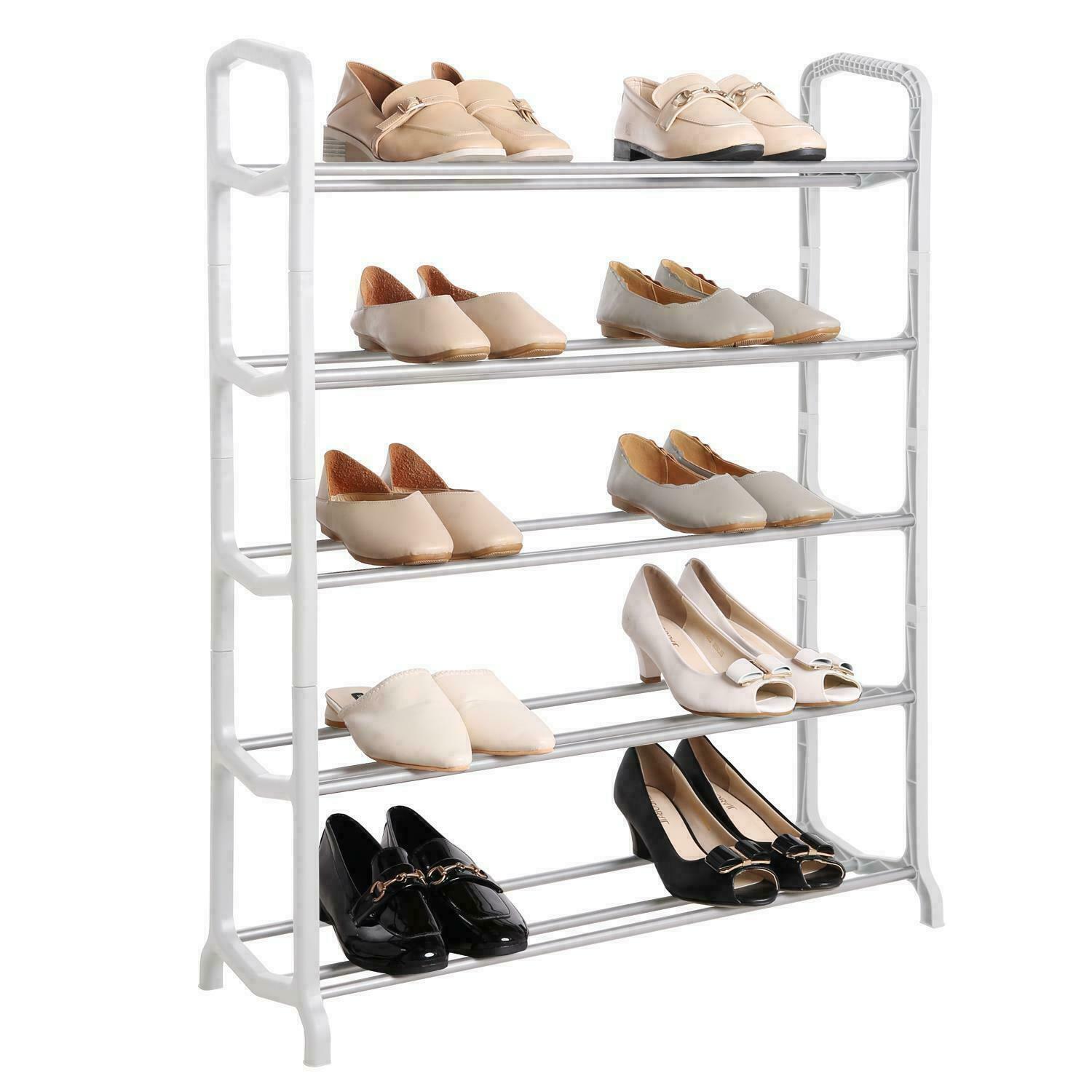5 Tier Shoe Stand Storage Organiser Rack Lightweight Compact Shelf Space Save