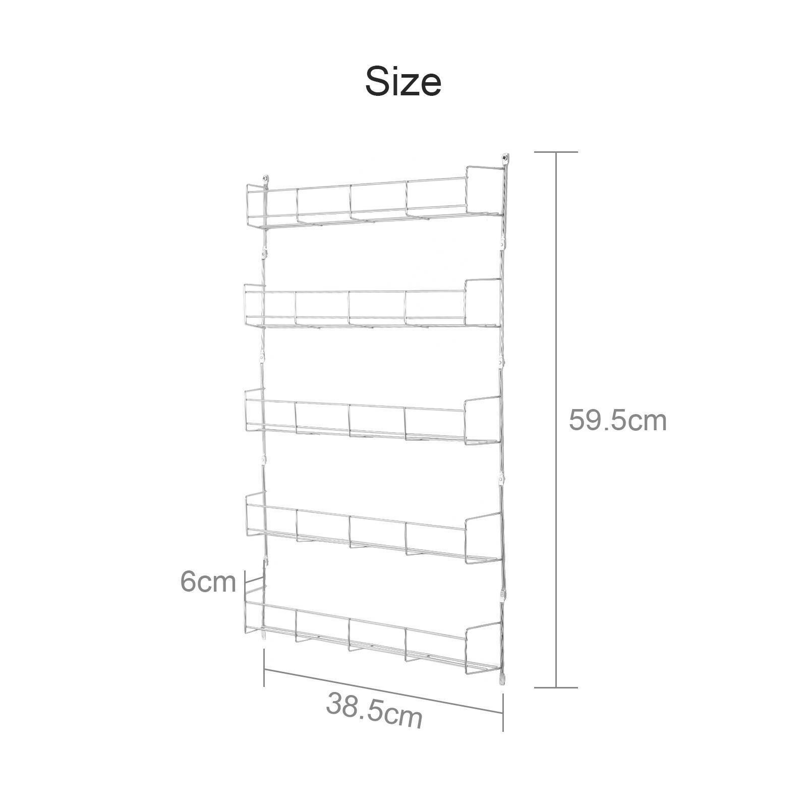 5 TIER SPICE HERB JAR RACK HOLDER FOR KITCHEN DOOR CUPBOARD STORAGE / WALL UK
