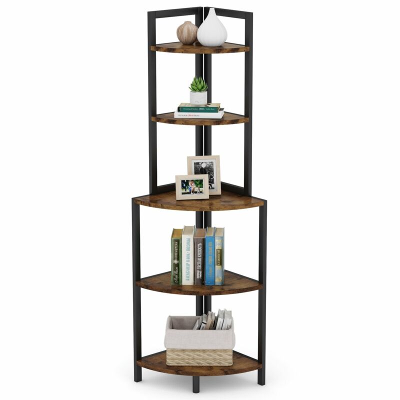5 Tier Wall Corner Shelf Stand Storage Home Office Skinny Display Bookshelf Rack