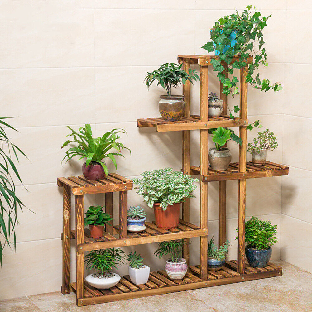 5 Tier Wooden Flower Plant Pot Shelf Stand Garden Terrace Florist Display Rack