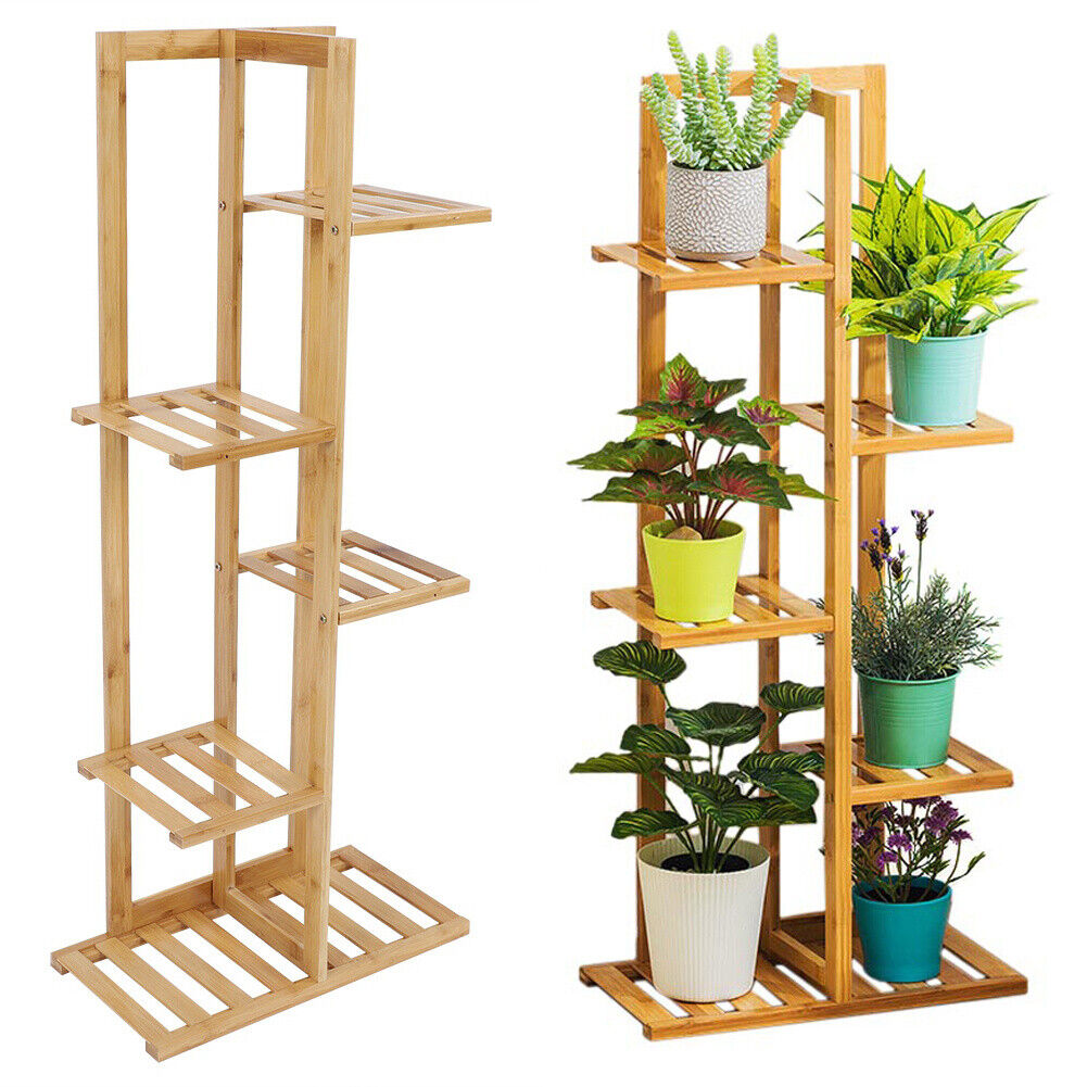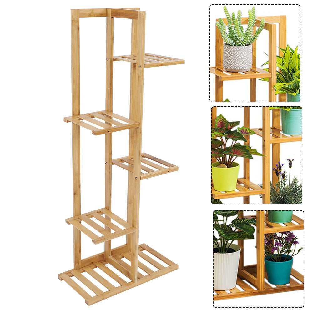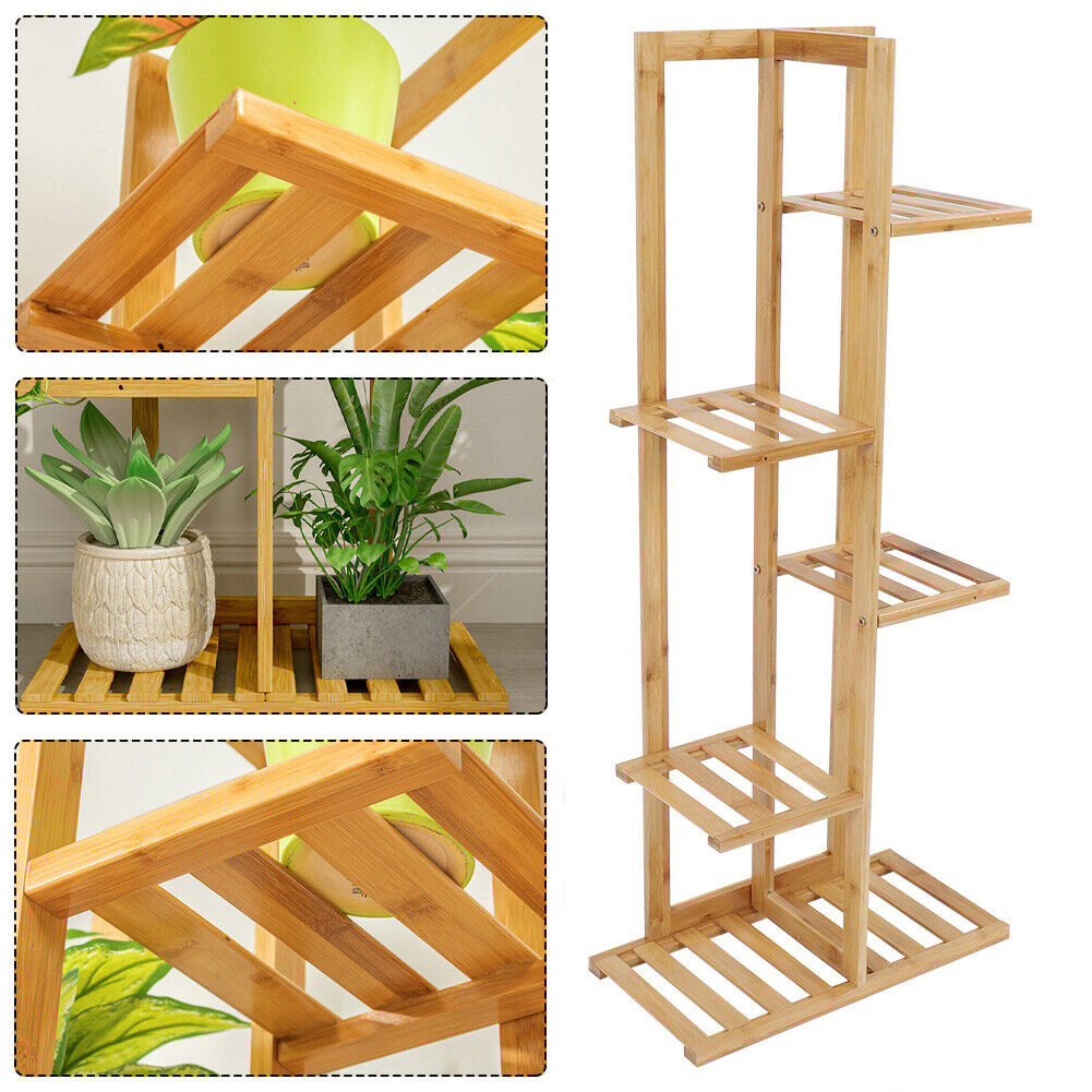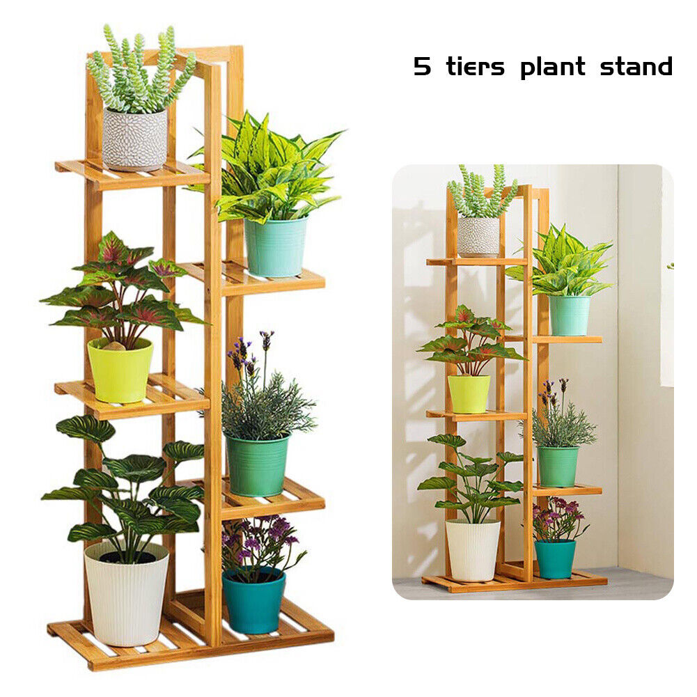 5 Tiers Bamboo Flower Pot Plant Stand Ladder Shelf Display Rack Indoor Outdoor