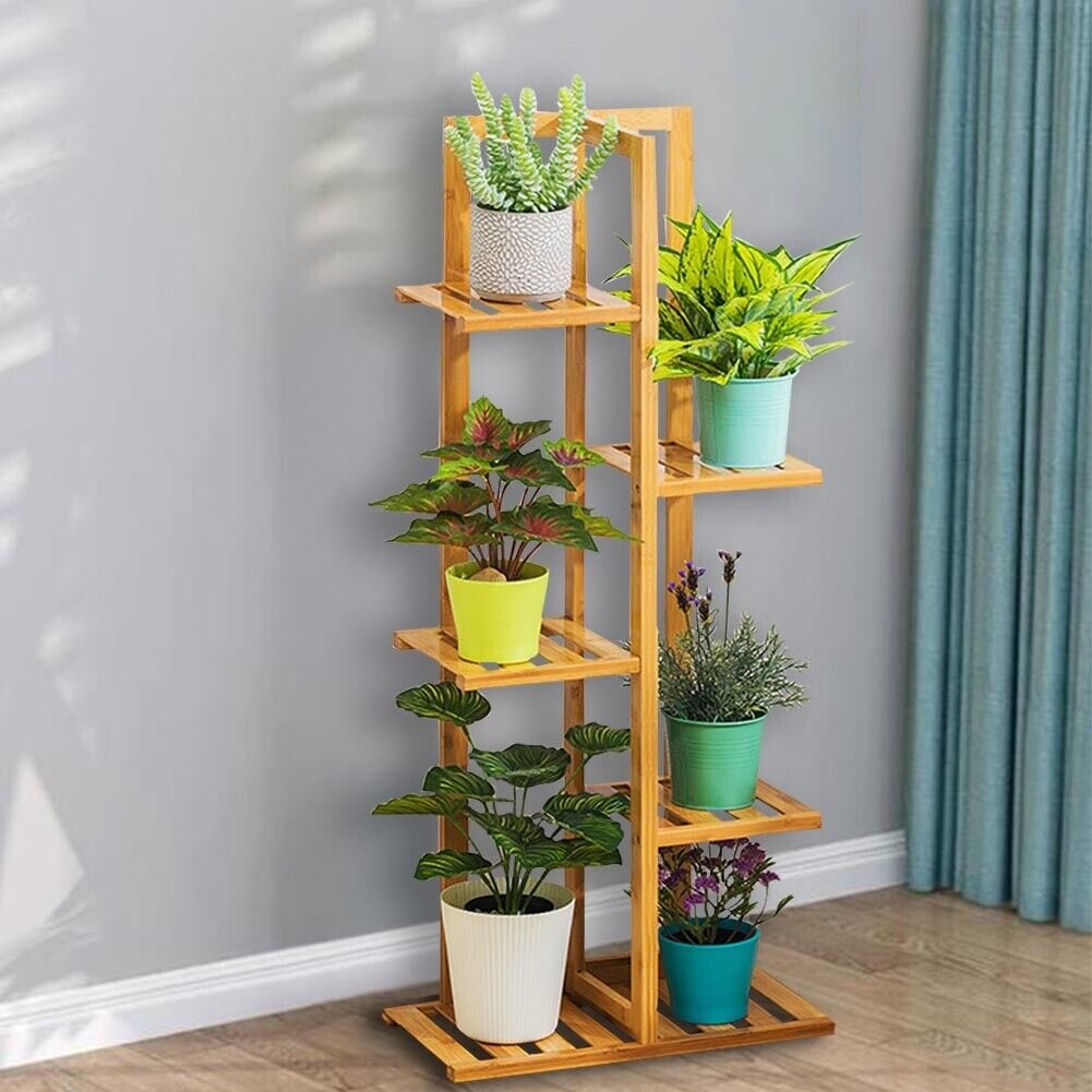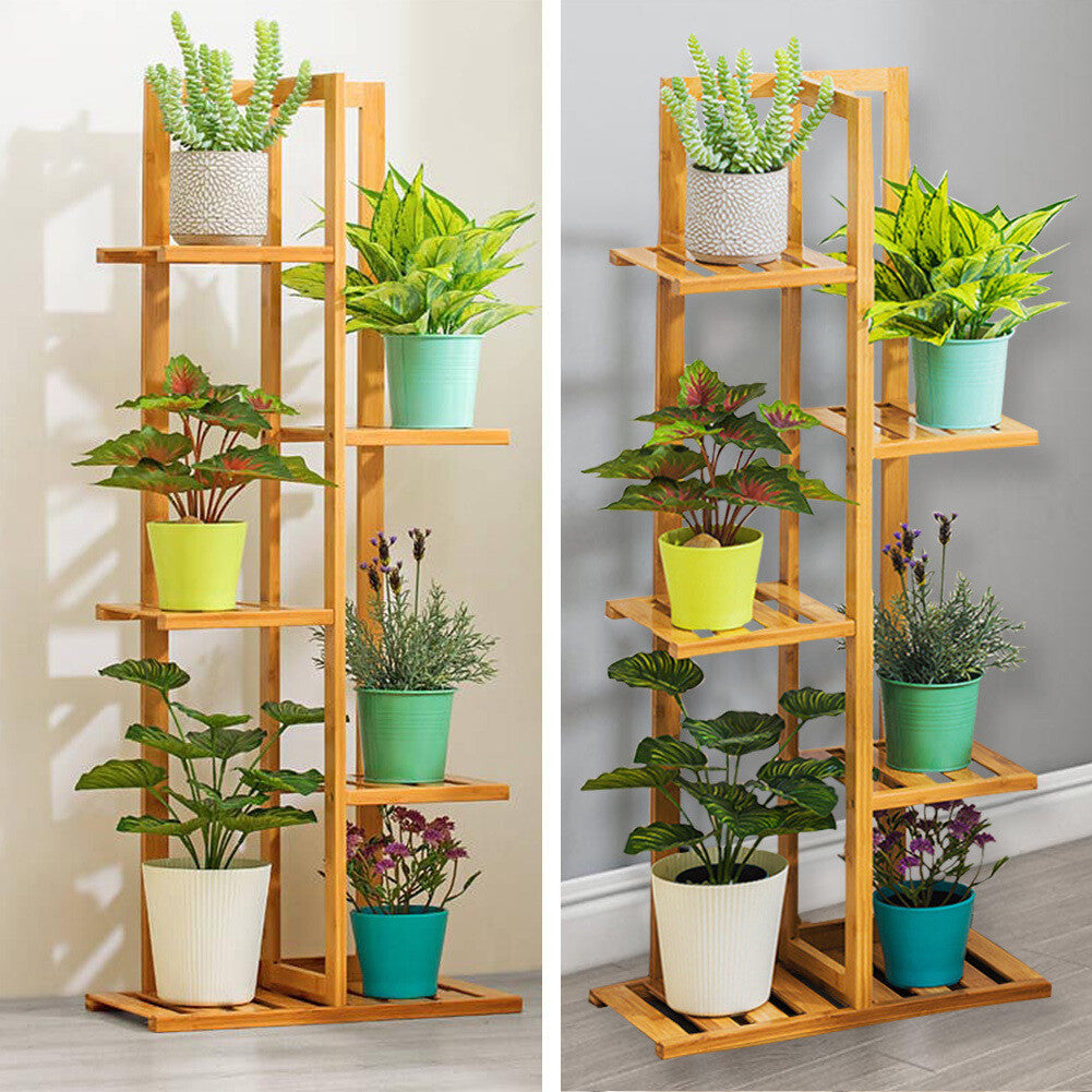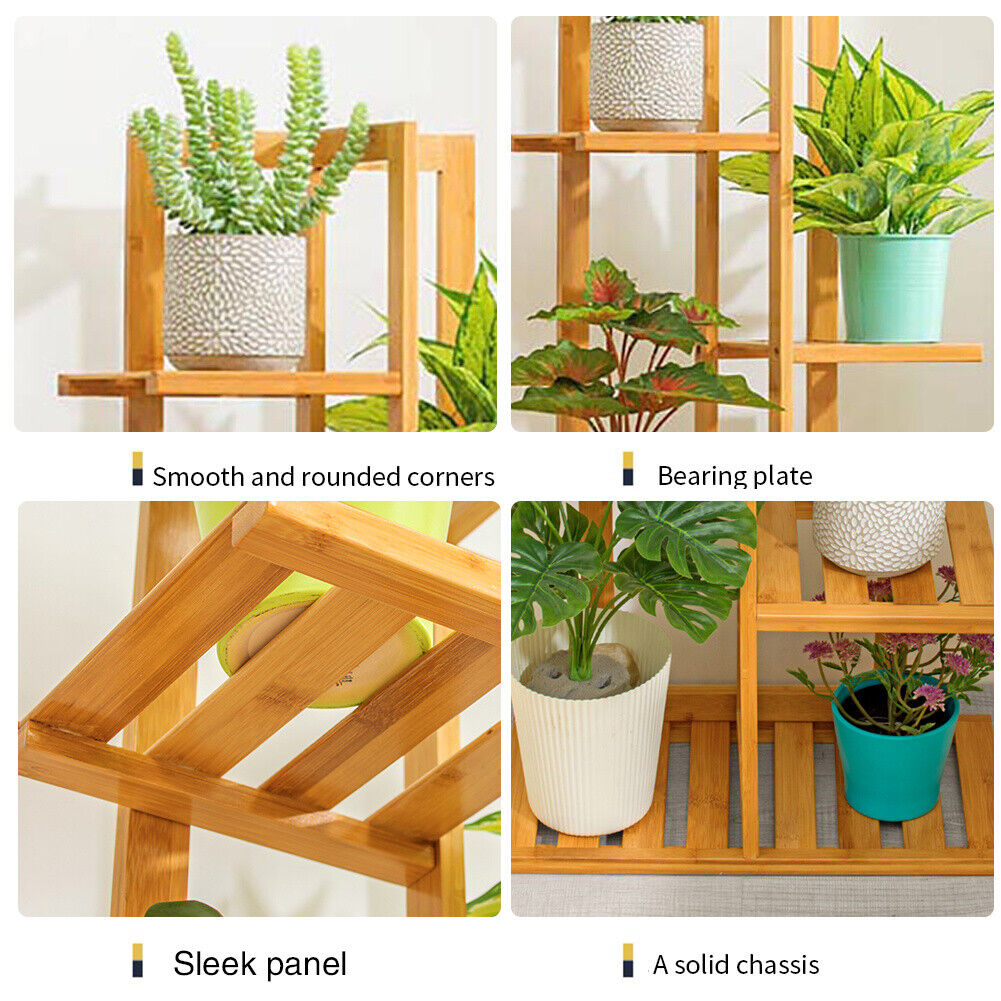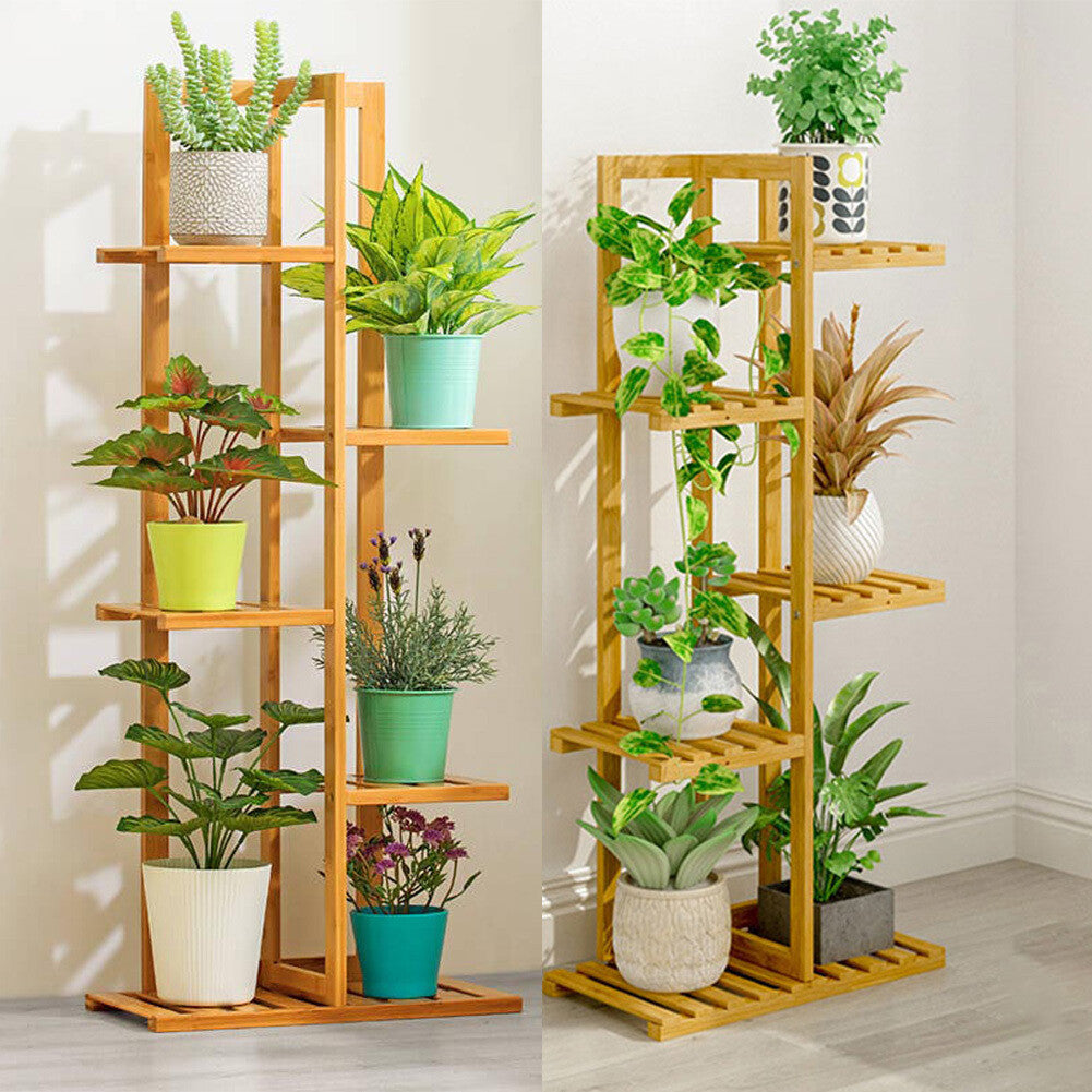 5 Tiers Bamboo Flower Pot Plant Stand Ladder Shelf Display Rack Indoor Outdoor