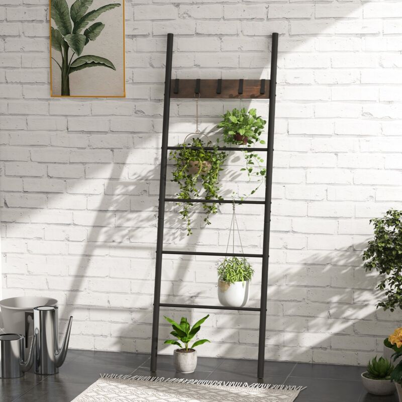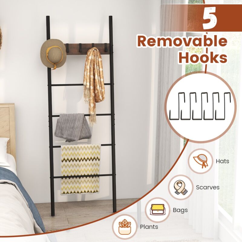 5-Tiers Blanket Ladder Wall leaning Display Shelf Industrial Blanket Holder Rack