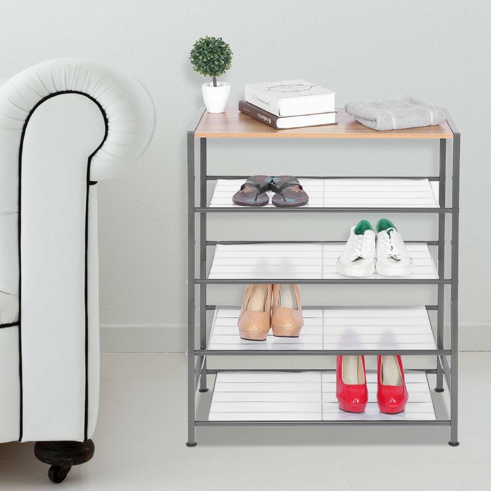 5 Tiers Home Shoe Rack Holder Storage Organiser Stand Wooden Metal Unit Cupboard