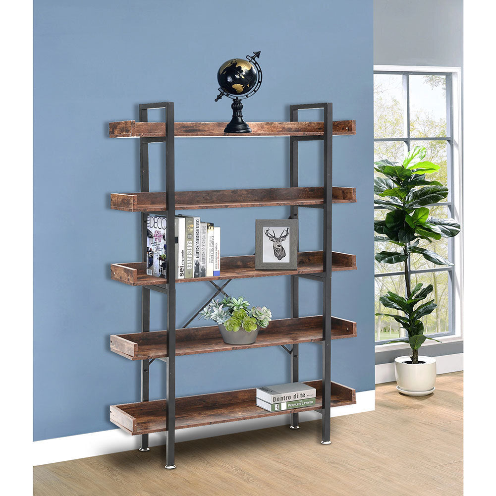 5 Tiers Industrial Bookshelf Rustic Retro Storage Display Rack Shelving Unit