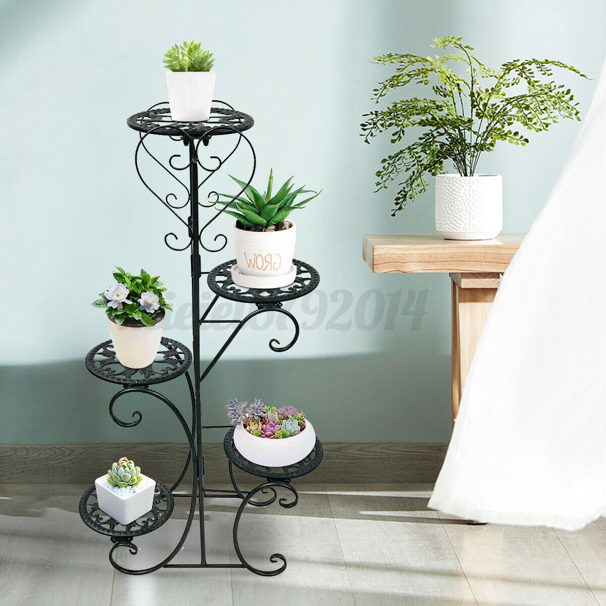 5 Tiers Metal Plant Flower Pot Stand Display Shelf Rack Patio Yard Deco