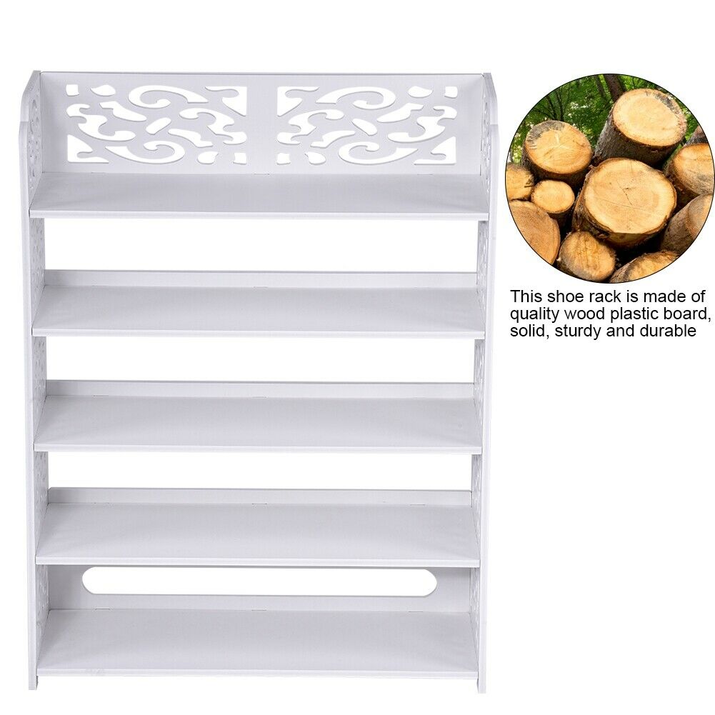 5 Tiers Shoe Rack Storage Shelf Display Stand Organiser Unit Cabinet White UK