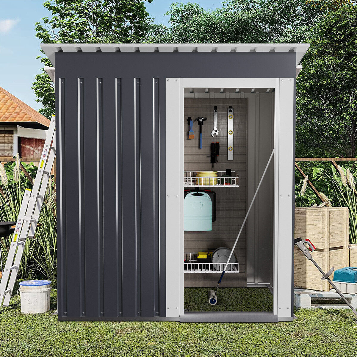 5 x 3ft Garden Shed Galvanised Metal Shed Outdoor Storage Tool Small House Grey