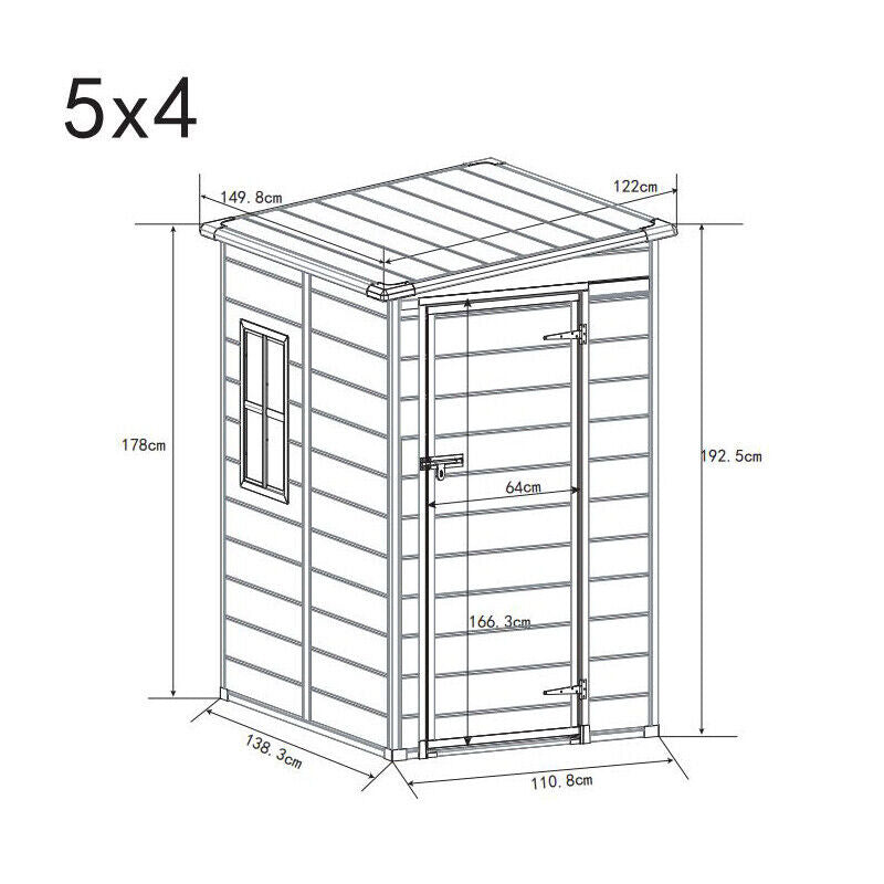 5 x 4 ft Pent Plastic Shed Garden Tools Storage Shed with Window and Door, Grey