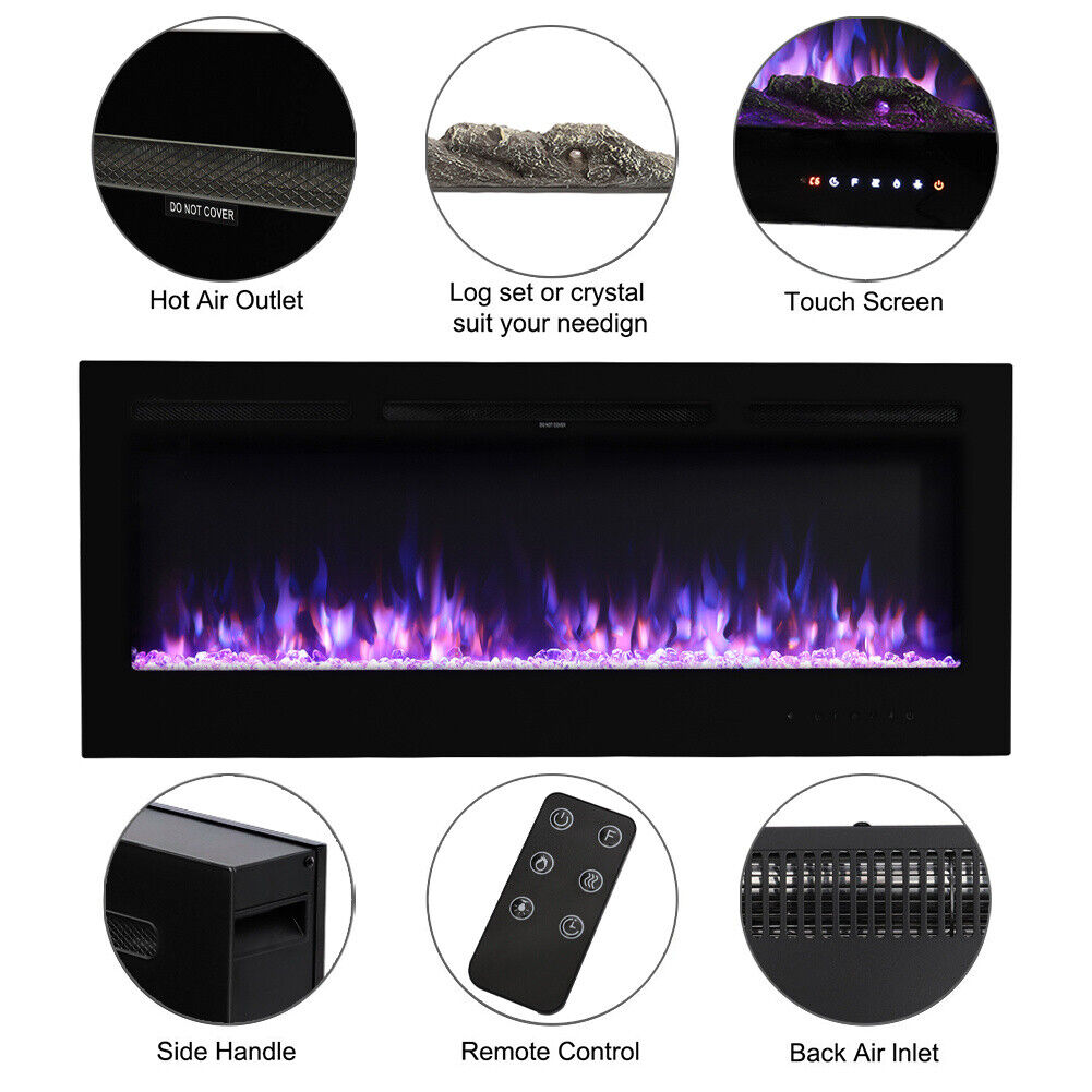 50" Electric LED Fireplace Wall Inset Fire Wall Mounted Heater Digital 9 Colours