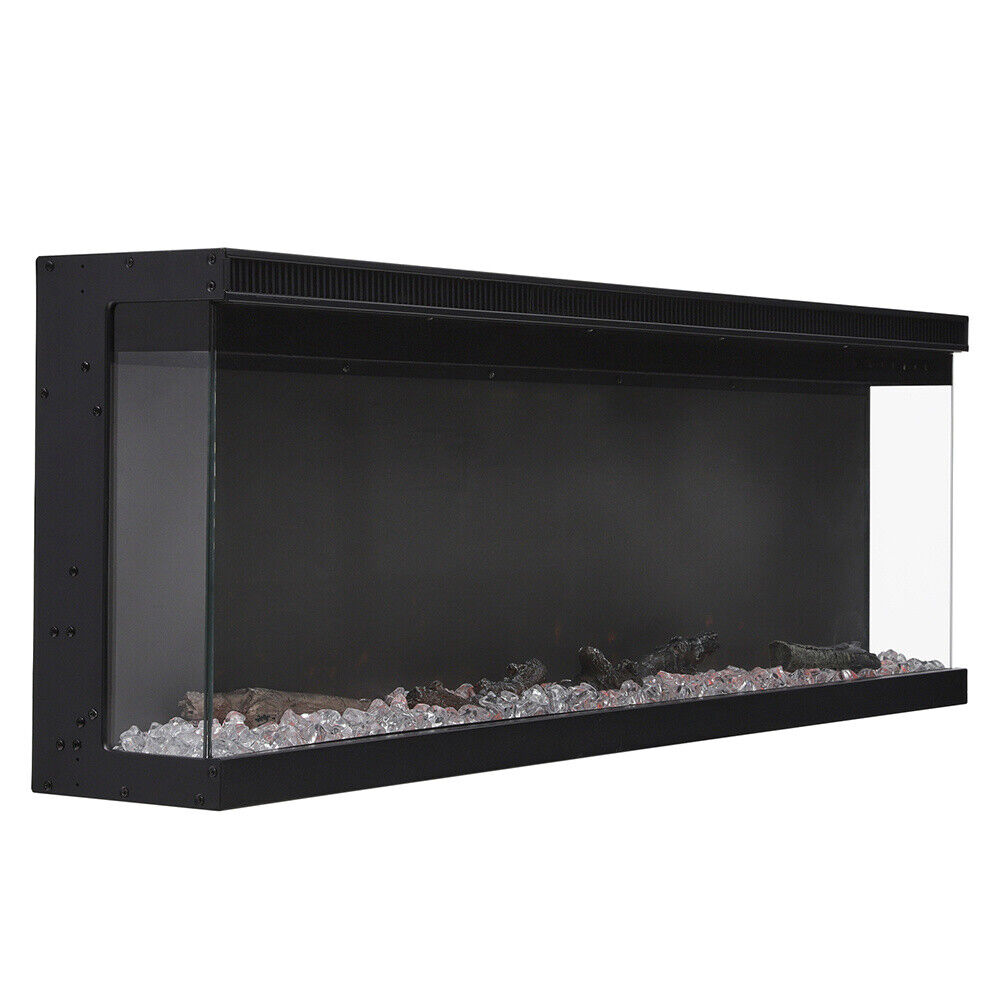 50" Electric Wall Fire Glass 3 Sided Panoramic Inset/Mantel Fireplace LED Flames