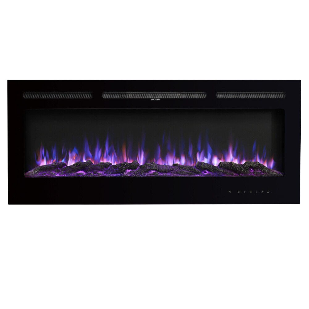 50 Inch Electric Digitled Flame Fire Wall/Recessed Insert Fireplace Thin Border