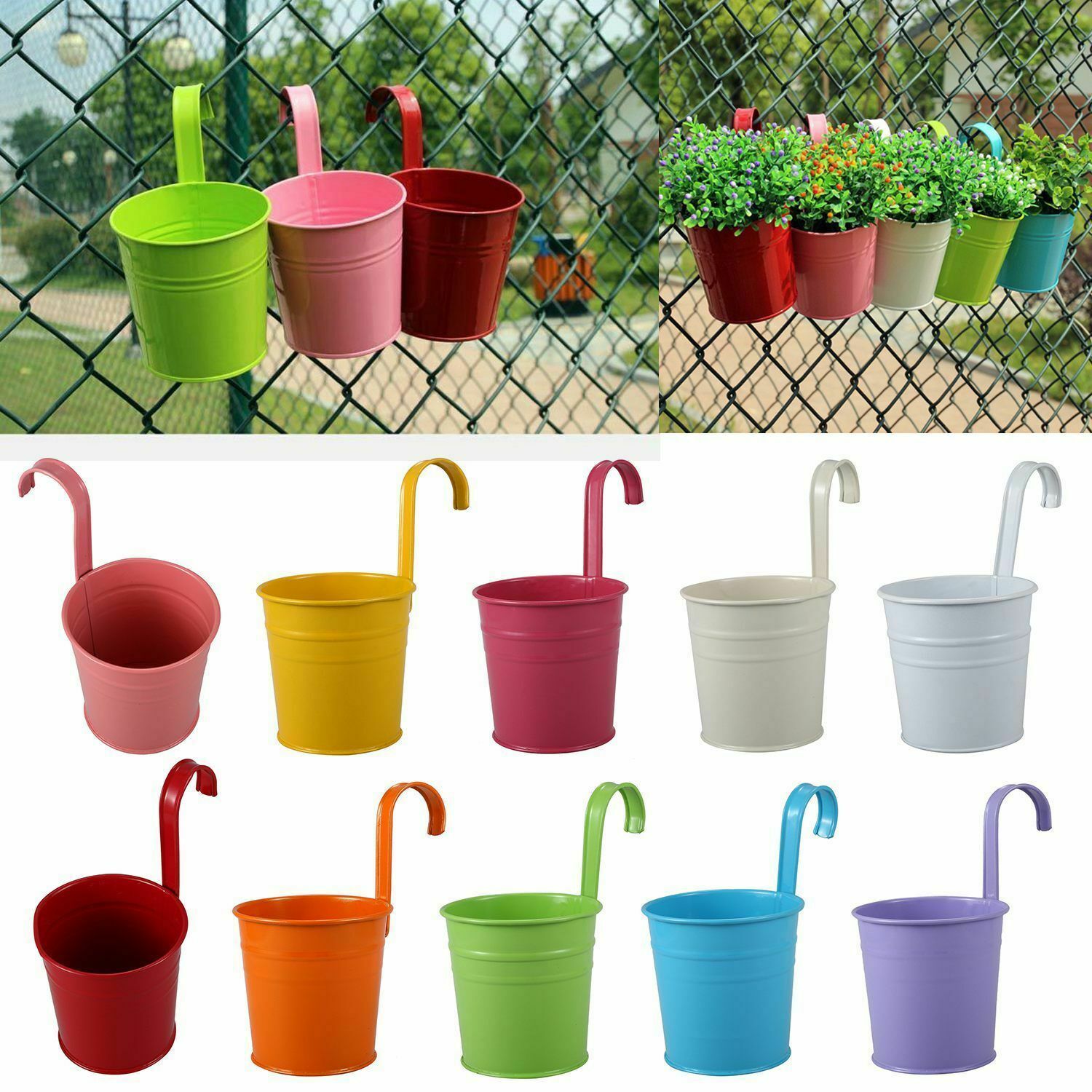 50 PCS Metal Flower Pots Balcony Garden Wall Fence Hanging Plant Planter S5O1E
