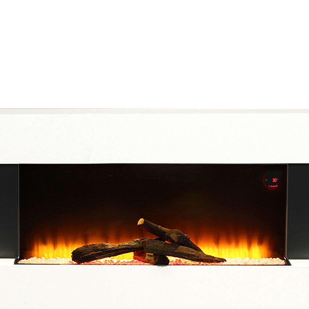 50" White Wall Mounted Fireplace Suite Electric Fire H-Shape Mantel Gloss Heater