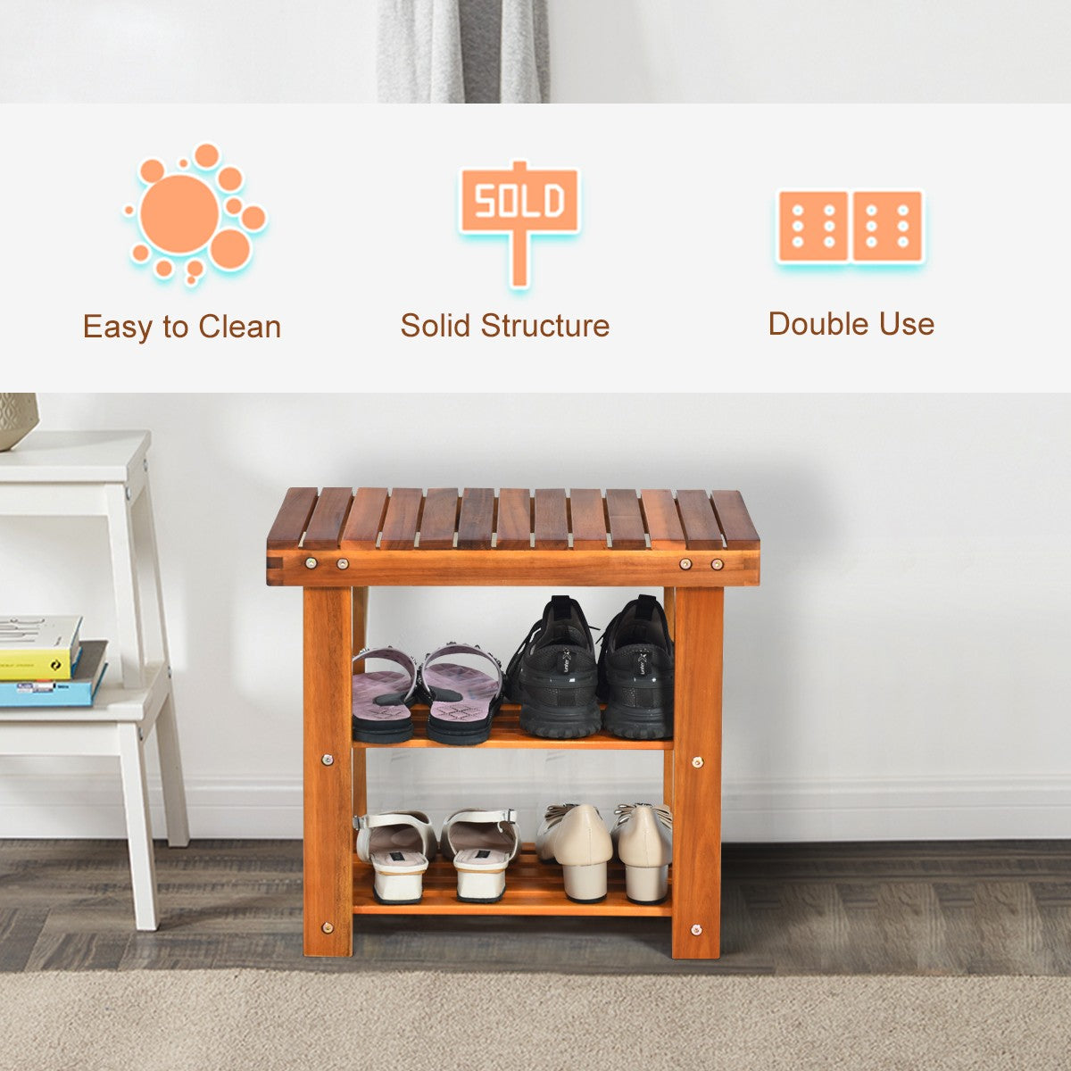 50 x 28 x 45cm 3-Tier Shoe Organizer Storage Shelf & Seat