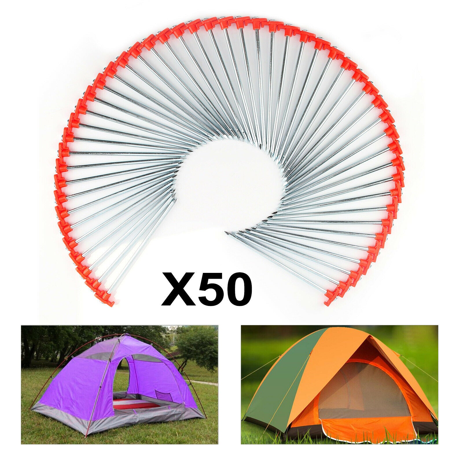 50 X Metal Tent Pegs Hard Ground Standing Camping Awning Pegs Heavy Duty Top UK
