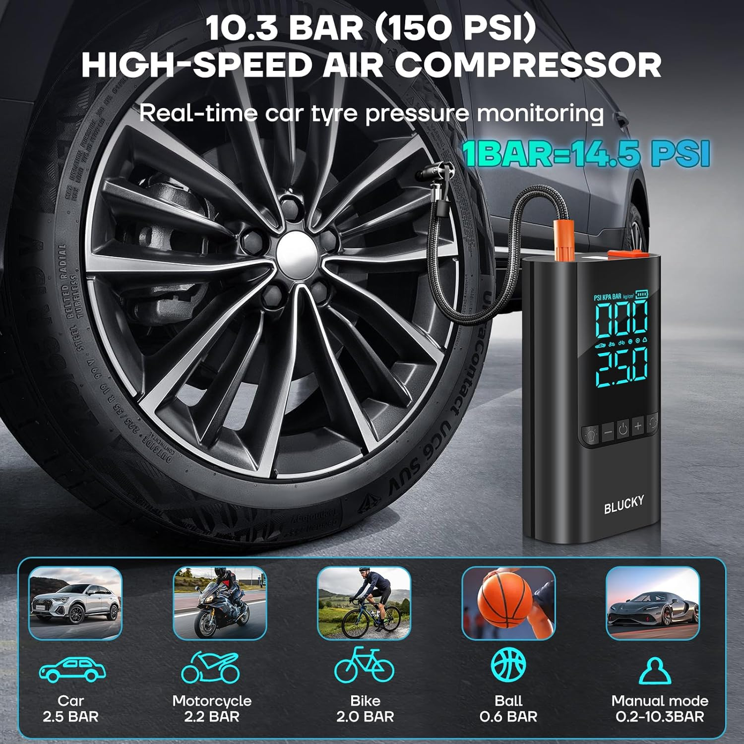 5000A 5-in-1 Jump Starter with 150PSI Air Compressor Power Bank & LCD Display