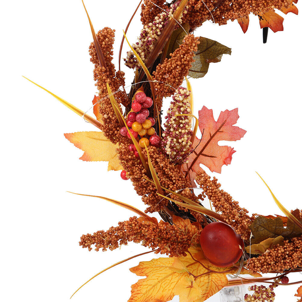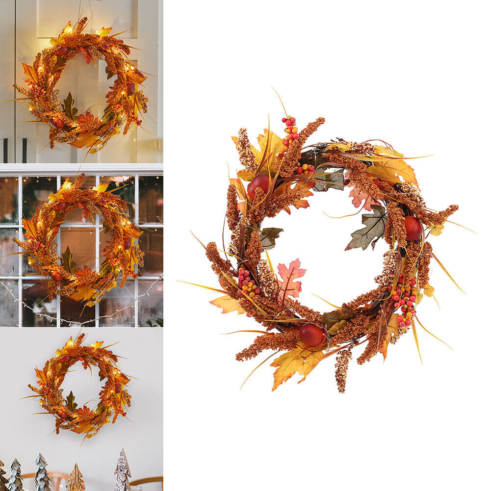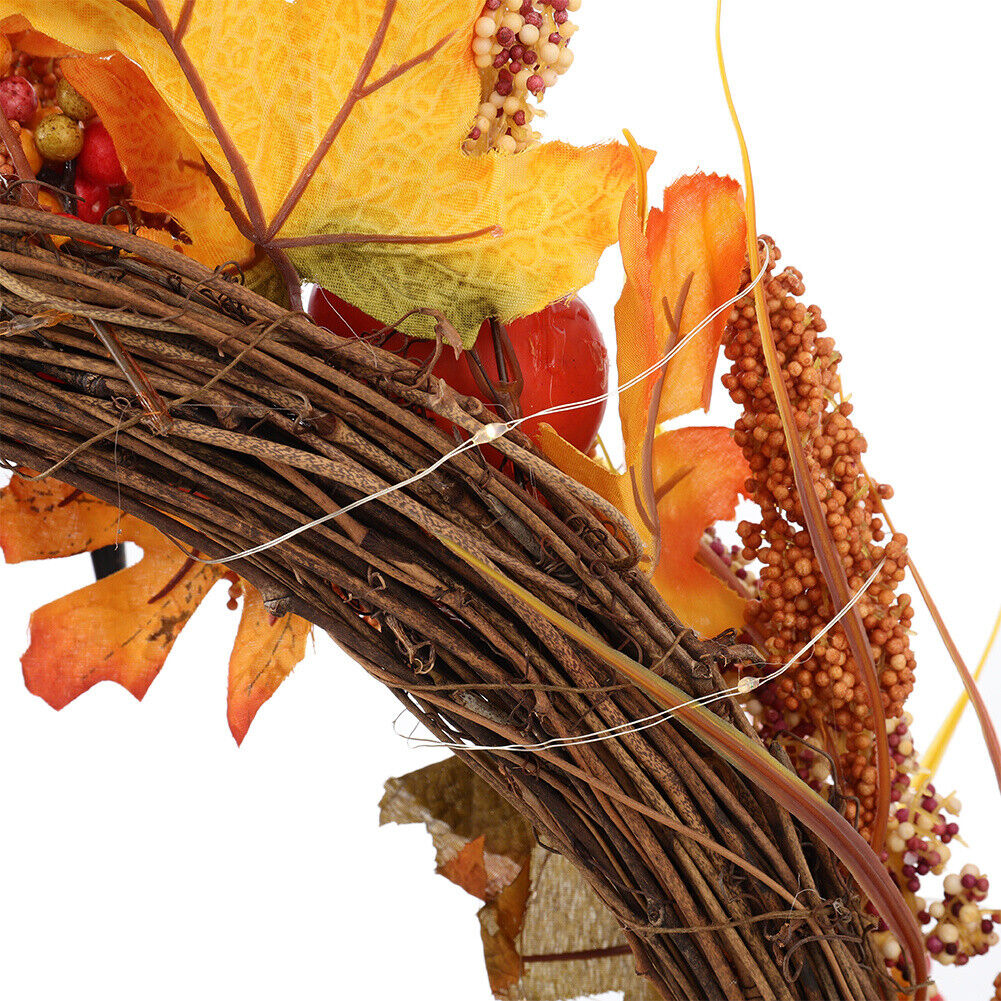 50cm Autumn Maple Leaf Garland Fall Wheat Harvest Wreath Front Door Hanging LED