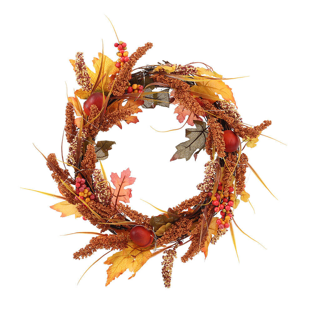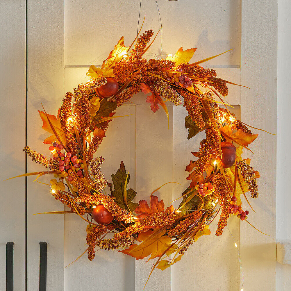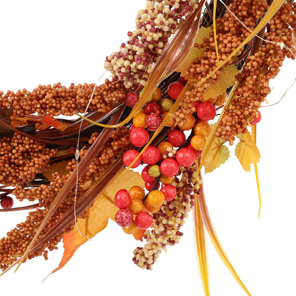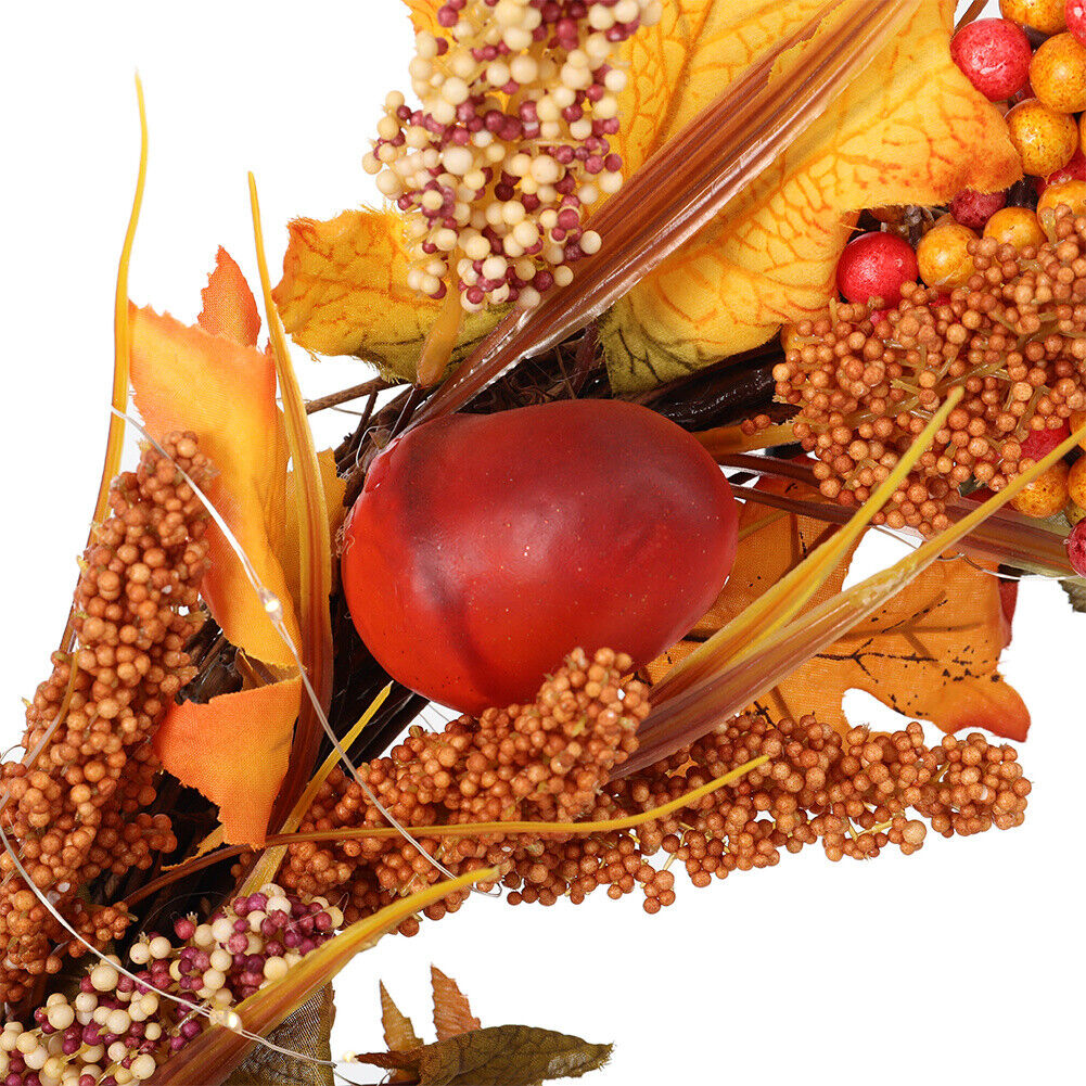 50cm Autumn Maple Leaf Garland Fall Wheat Harvest Wreath Front Door Hanging LED