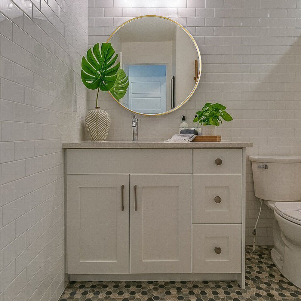 50CM Round Bathroom Wall Mounted Mirror Vanity Mirror Brushed Gold Metal Frame