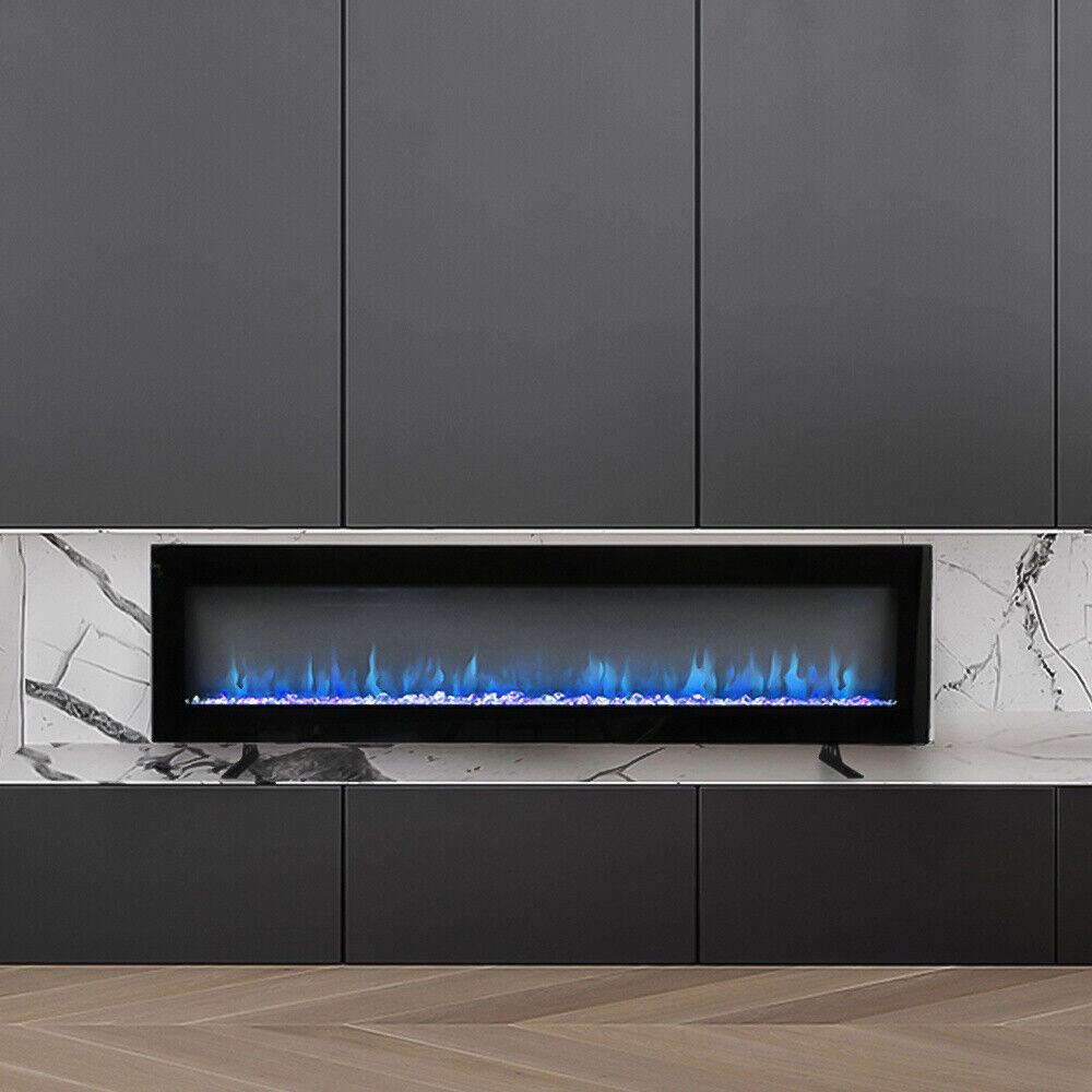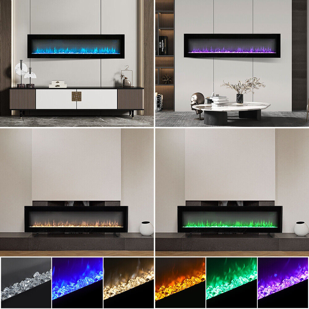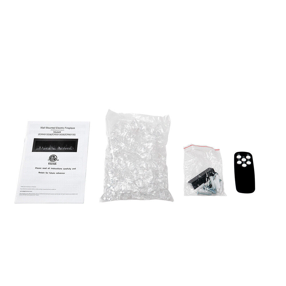 Adjustable Brightness, Adjustable Flame Colors, Adjustable Thermostat, LED Flames, On/Off Switch, Remote Control, Timer, LCD Display, With Natural Pebbles, With Wall Bracket, Wall Mounted, Crystal Effect Fire Inlcuded, Freestanding