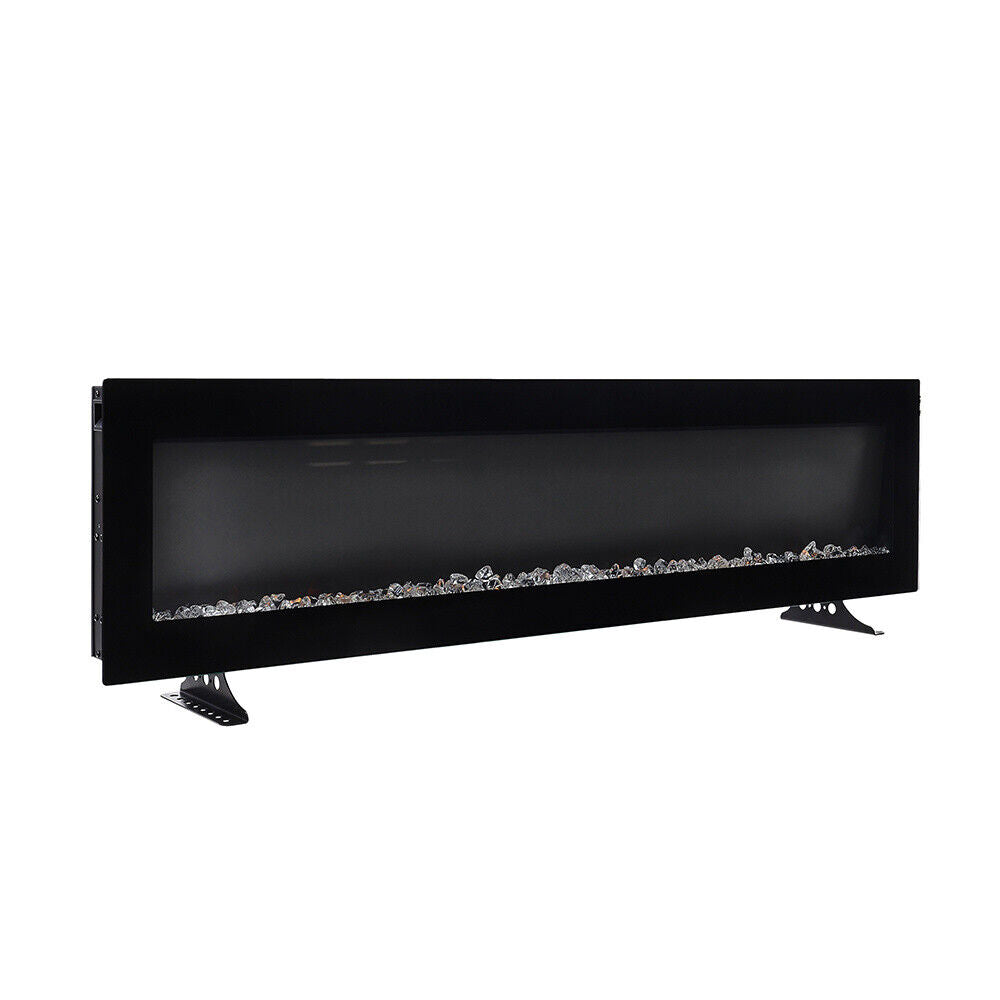 Features Adjustable Brightness, Adjustable Flame Colors, Adjustable Thermostat, LED Flames, On/Off Switch, Remote Control, Timer, LCD Display, With Natural Pebbles, With Wall Bracket, Wall Mounted, Crystal Effect Fire Inlcuded, Freestanding