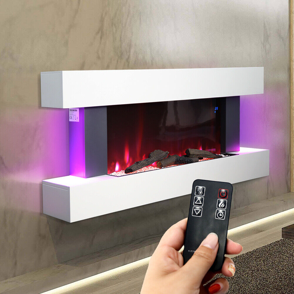 50"LED Fireplace White Surround Suite Wall/Stand Wide Electric Fire 7Color Frame