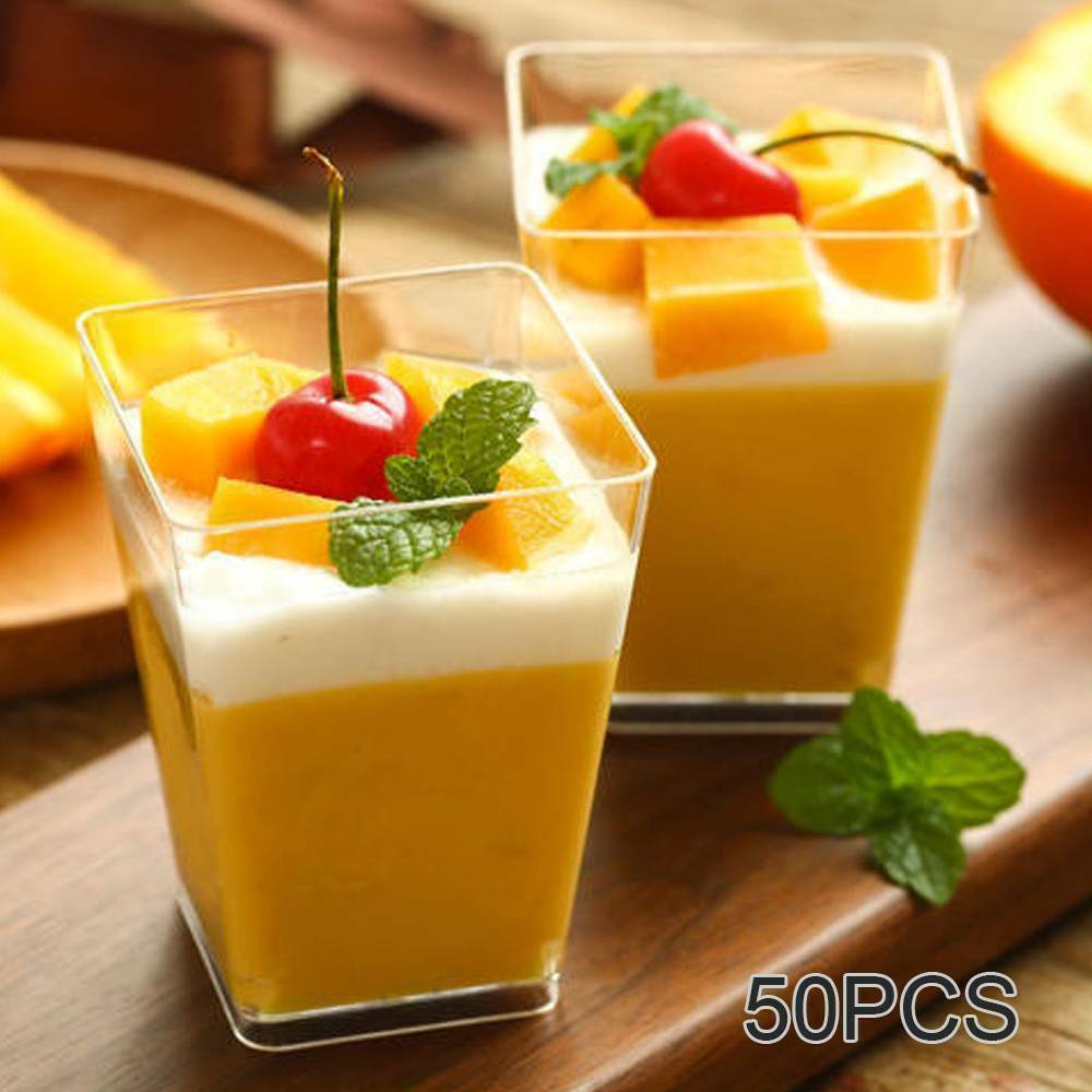50Pcs Square Plastic Dessert Cups Mini Cubes 2oz/60ml Strong Cup Party Decor UK