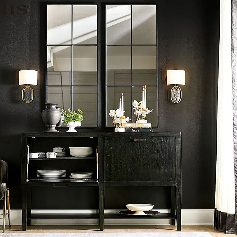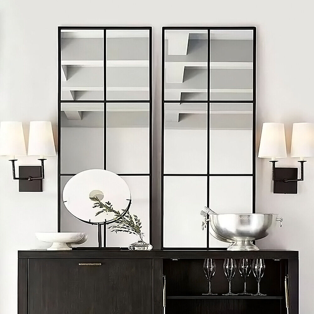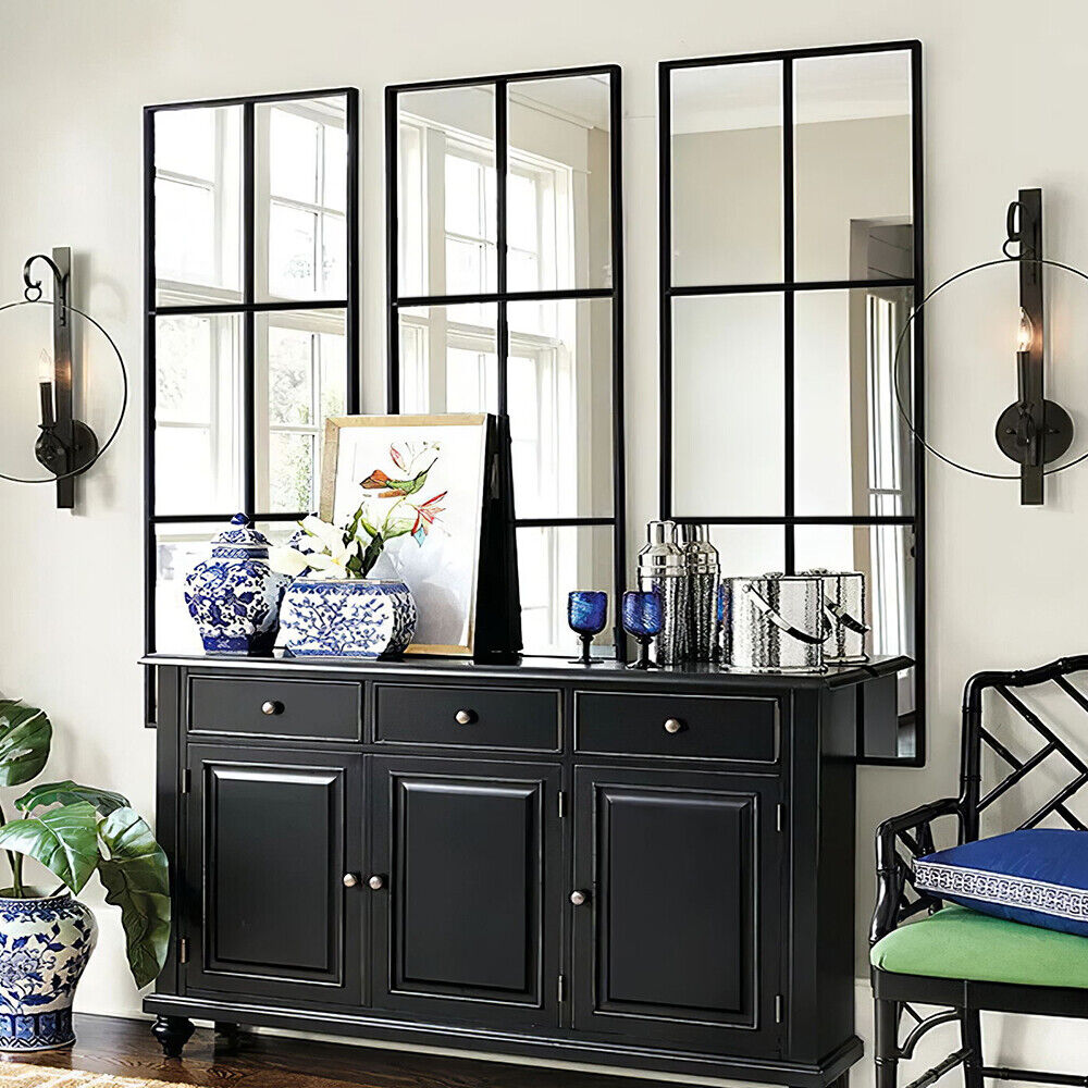 50x120CM WINDOW STYLE MIRROR LIVING ROOM DECOR HALLWAY GARDEN WALL GLASS (BLACK)