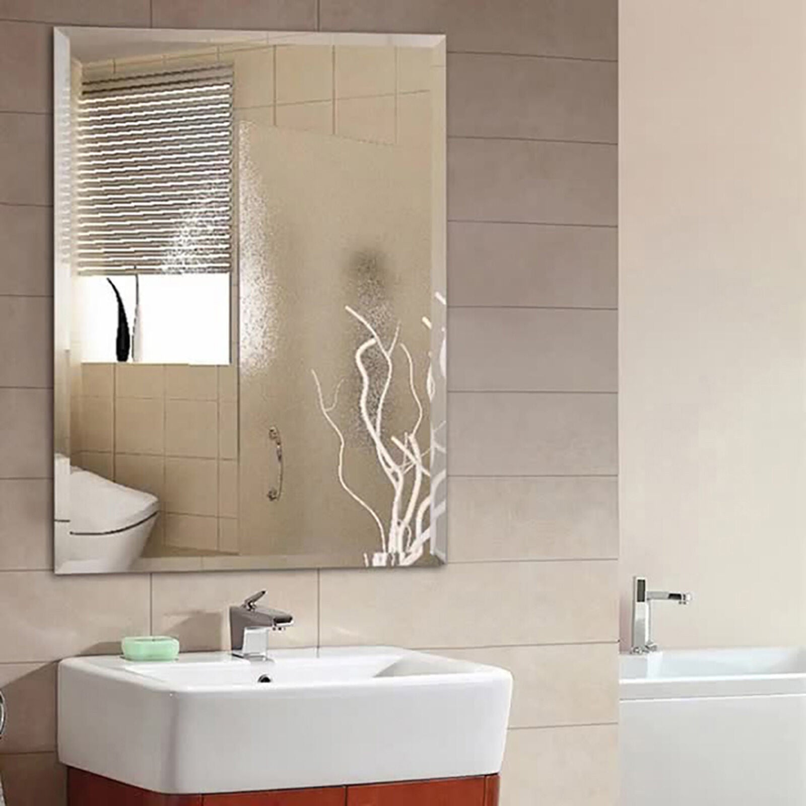 50X60cm Plain Bathroom Mirror Wall Mounted/Self-adhesive Frameless Bevelled Edge