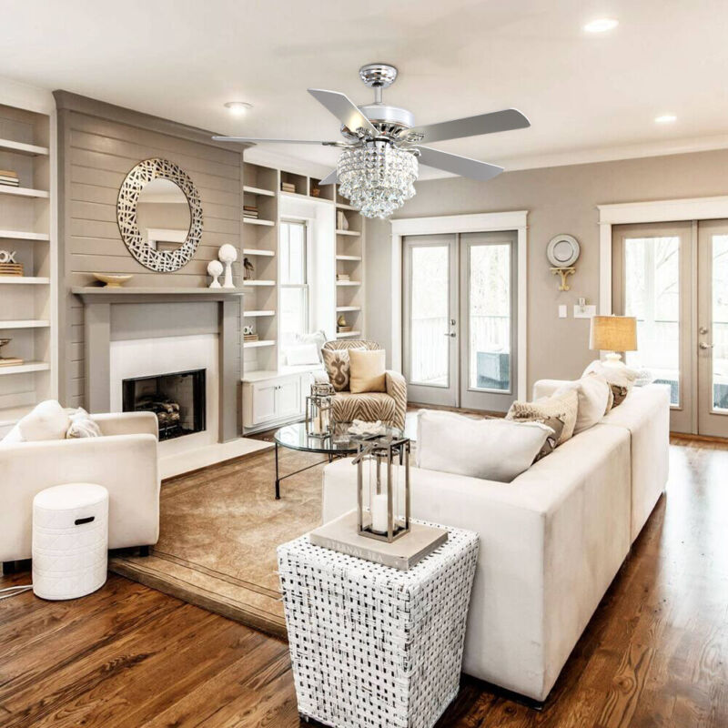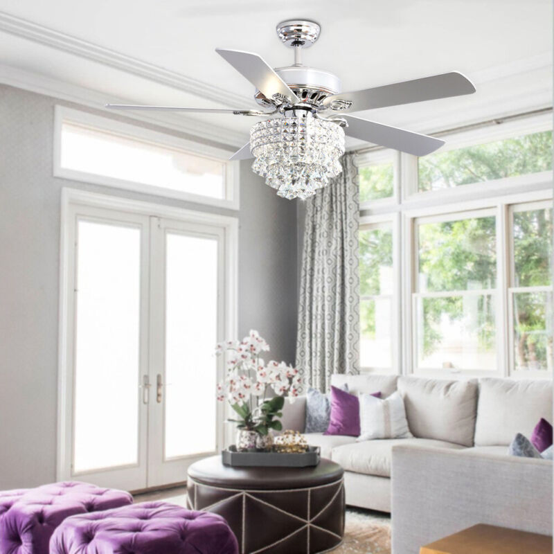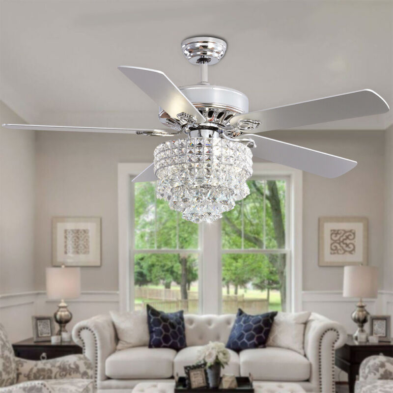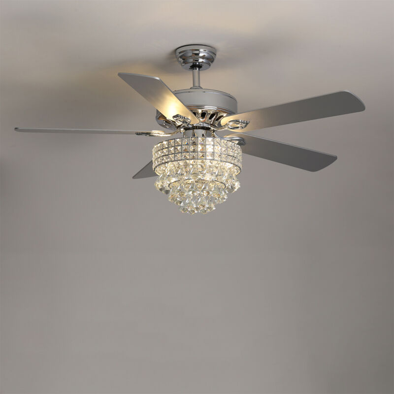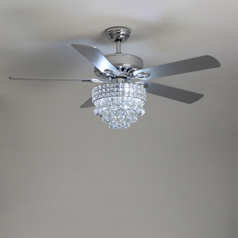 52" Ceiling Fan 5 Chrome Blades LED Crystal Chandelier Lamp with Remote Control