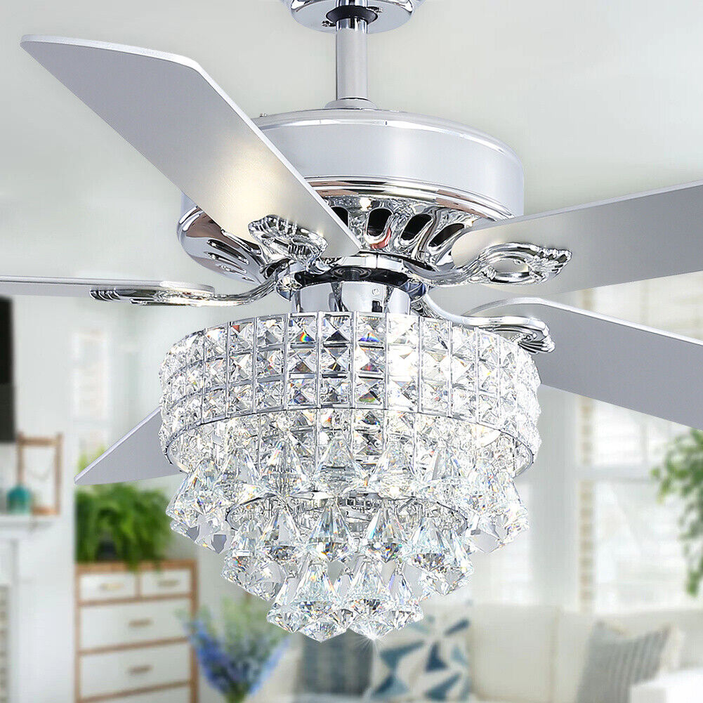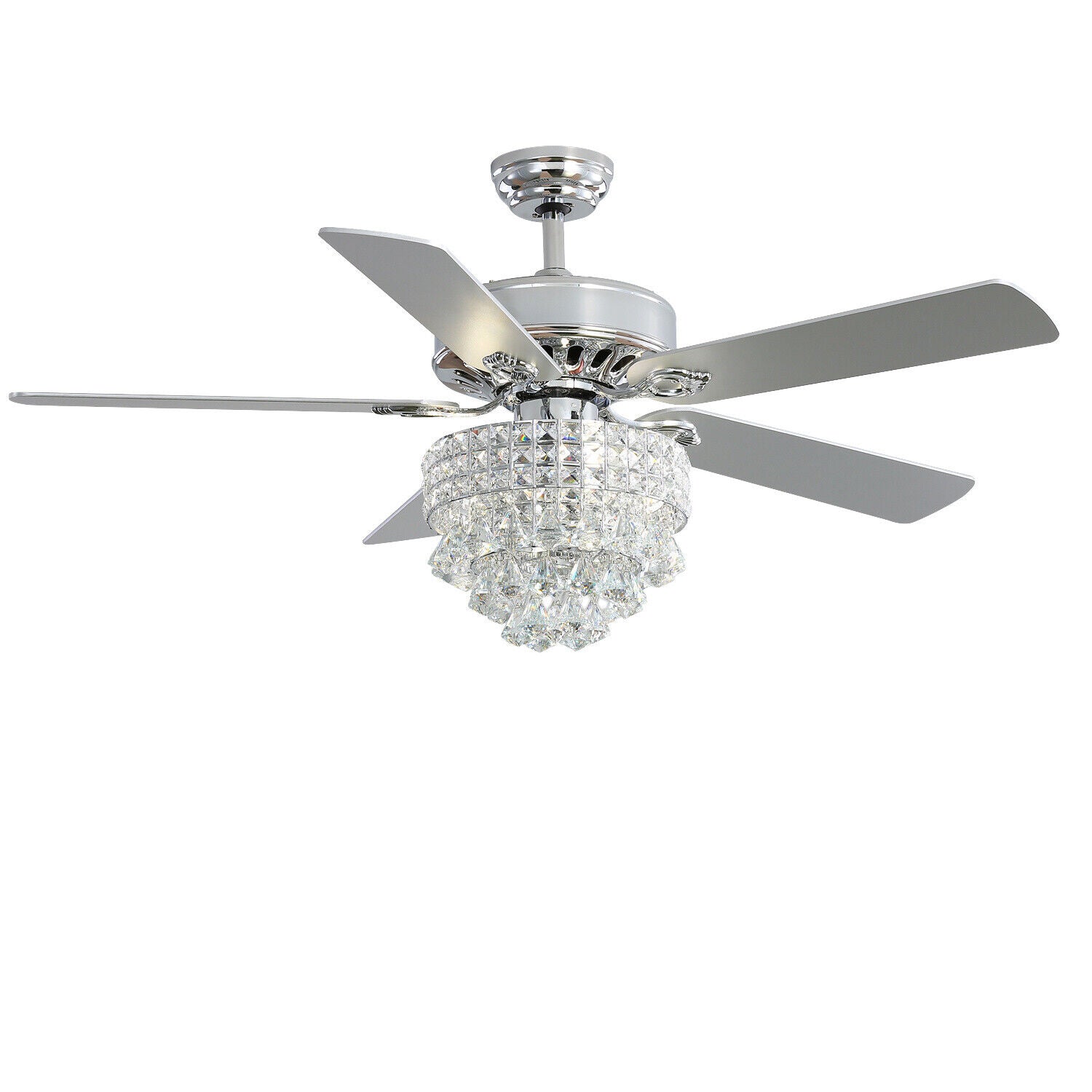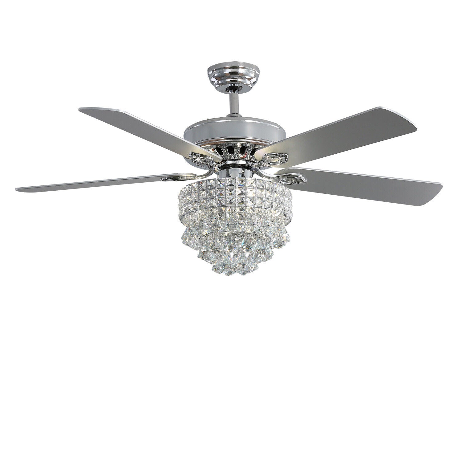 52'' Crystal Ceiling Fan Light 5 Blades 3 Speed Chandelier Lamp w/Remote Control