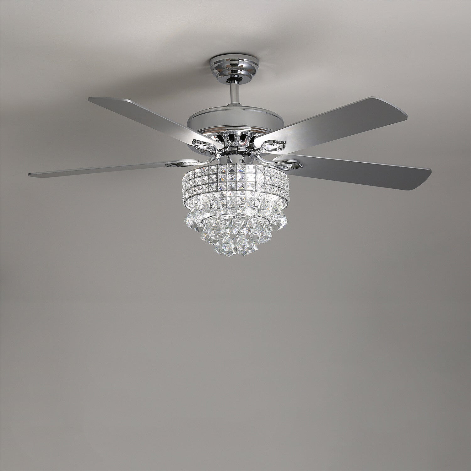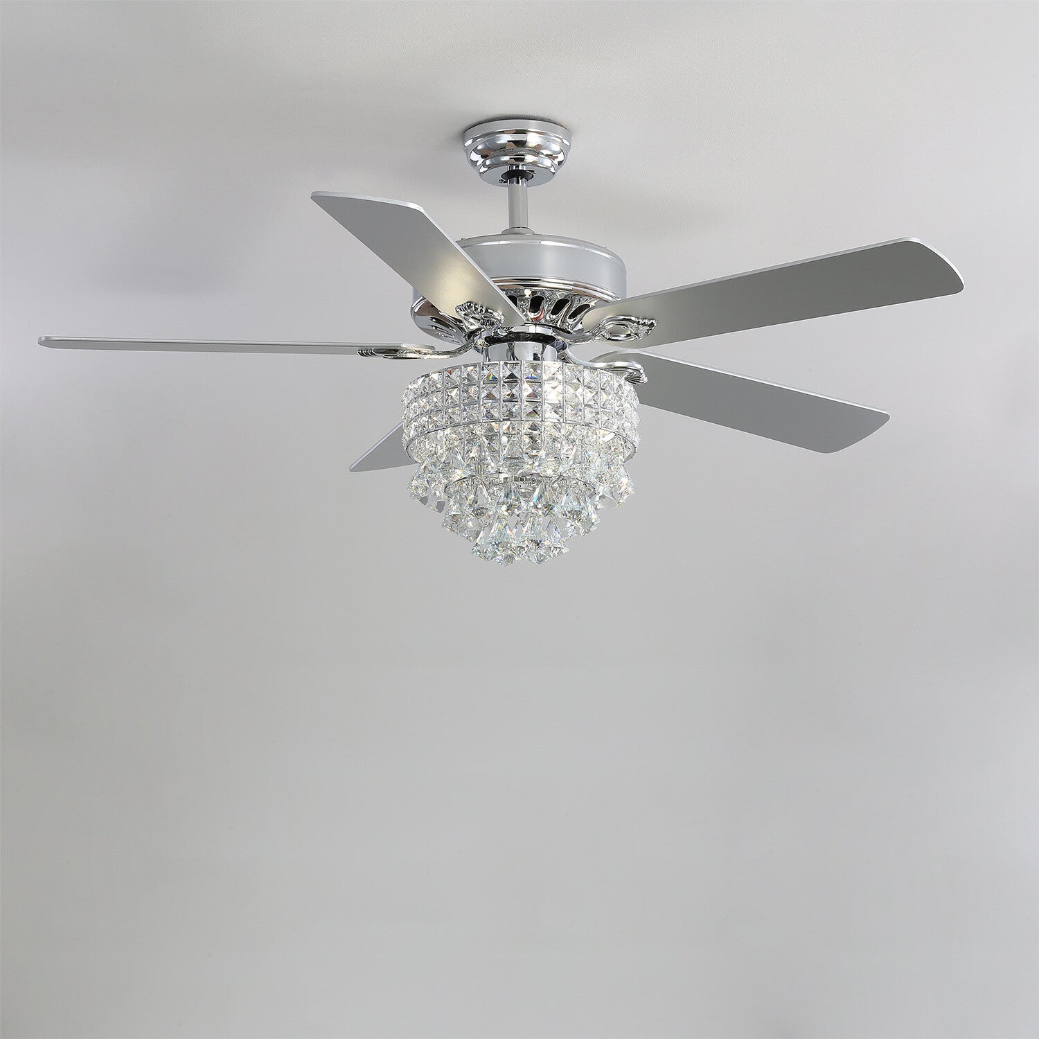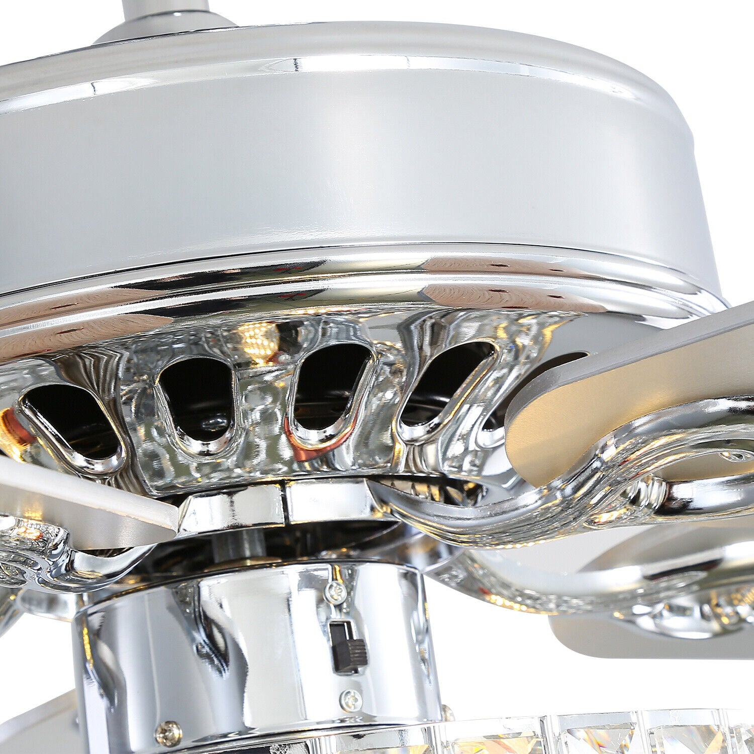 52'' Crystal Ceiling Fan Light 5 Blades 3 Speed Chandelier Lamp w/Remote Control