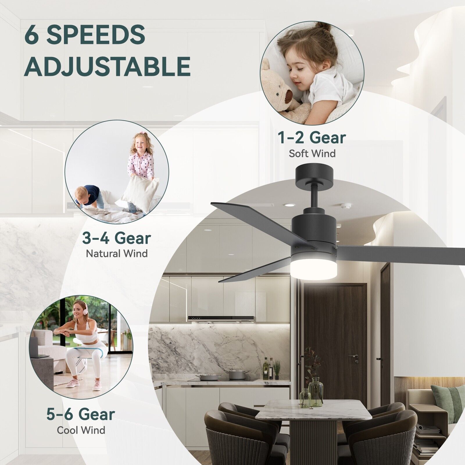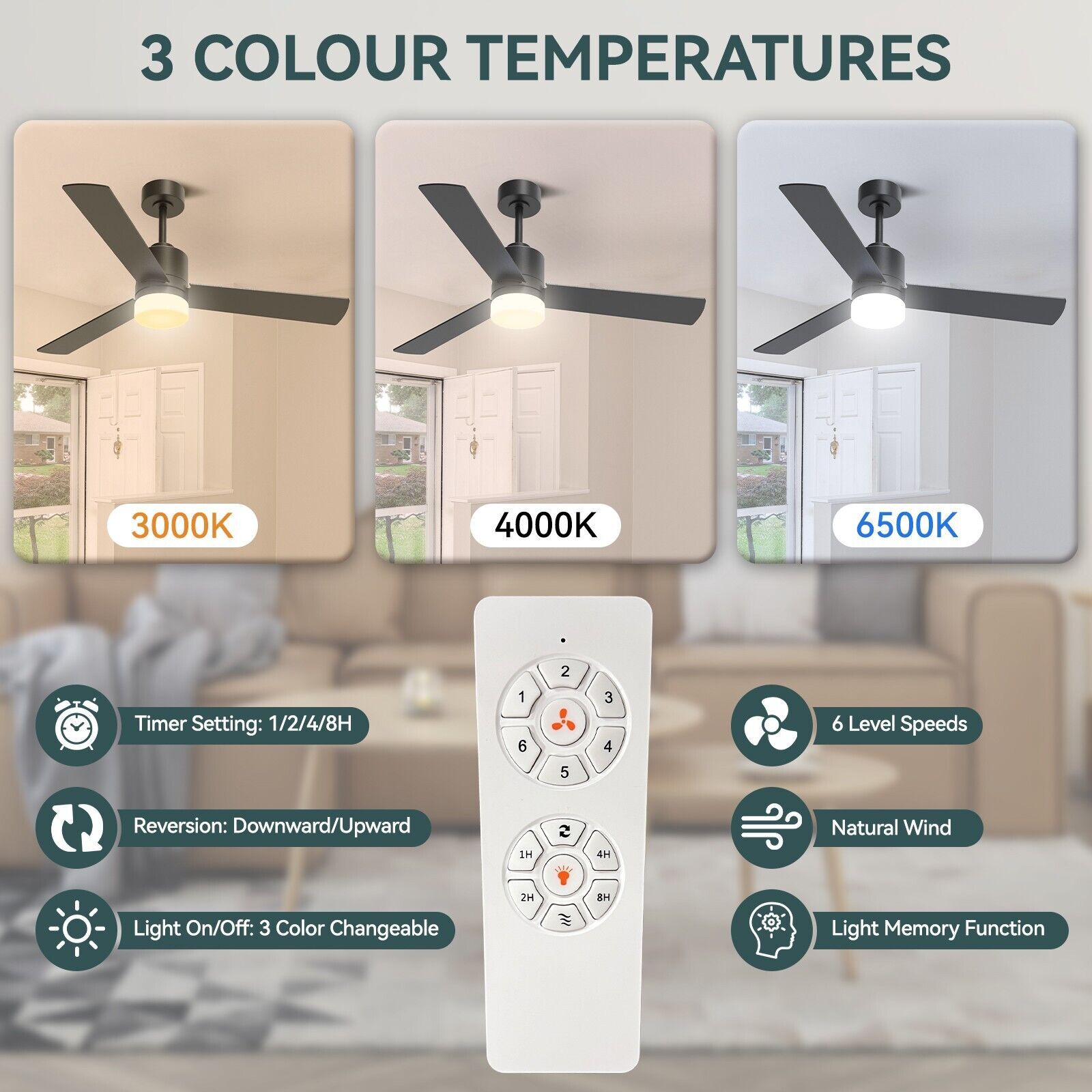 52" LED Ceiling Fan with Light 6 Speed 3 Colour Timer Remote Bedroom Living Room