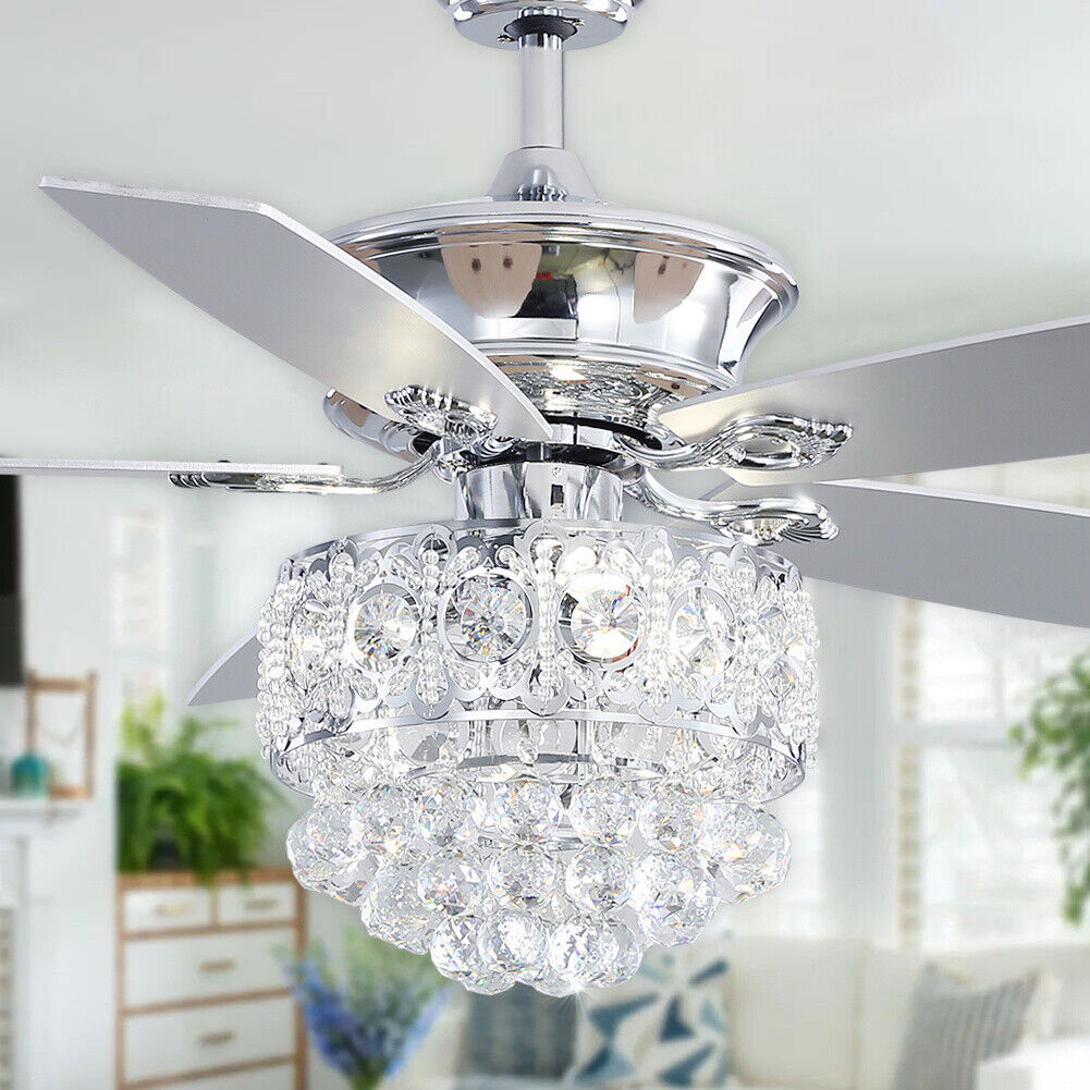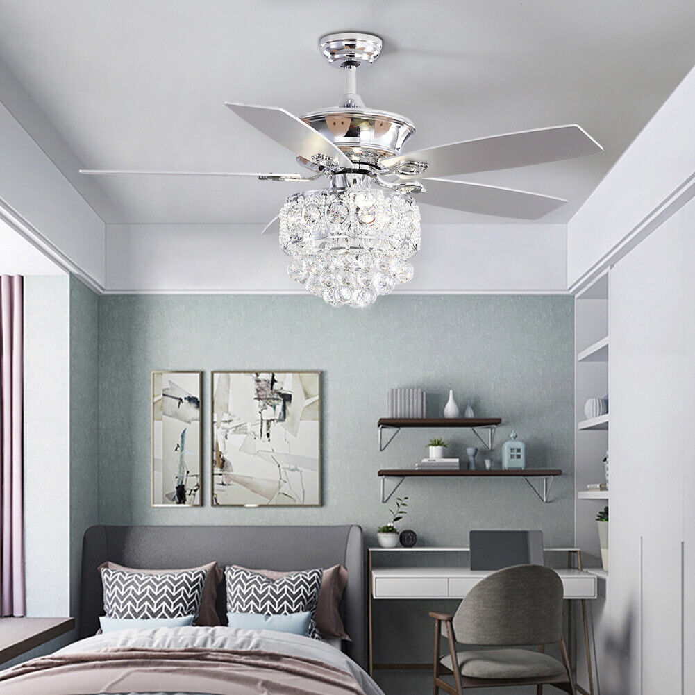 52"Crystal Ceiling Fan Chandelier LED Lights 5 Blades 3 Speed w/Remote Control