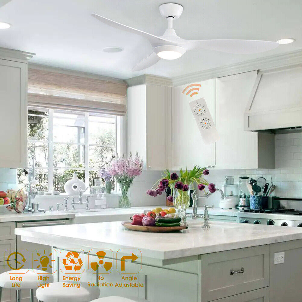 52Inch Ceiling Fan Dimmable LED Light 5 Speed with Timer Remote Control 3 Blades