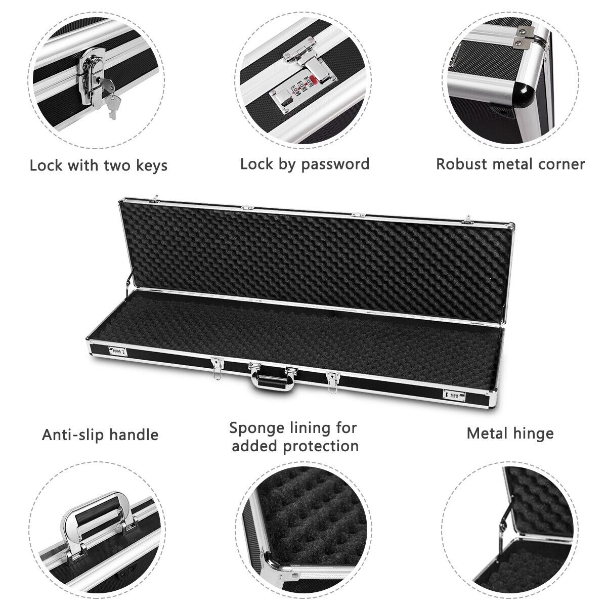 53" Long Aluminum Locking Rifle Gun Case Lock Box Shotgun Storage Box Carry Case