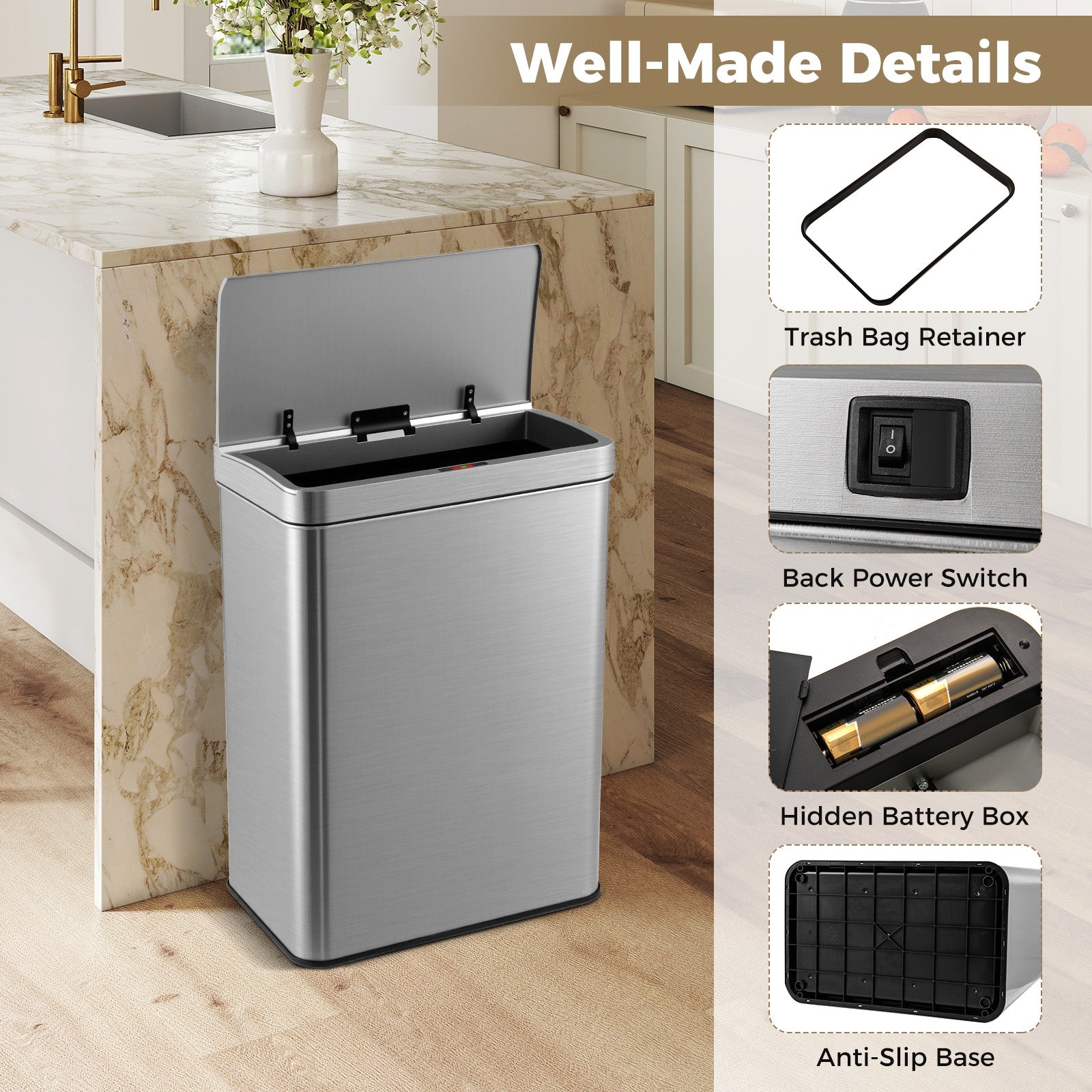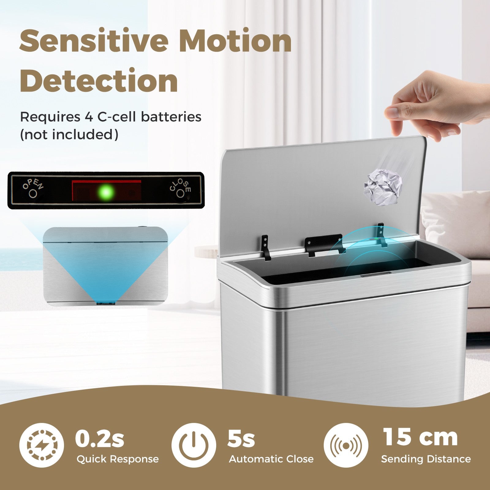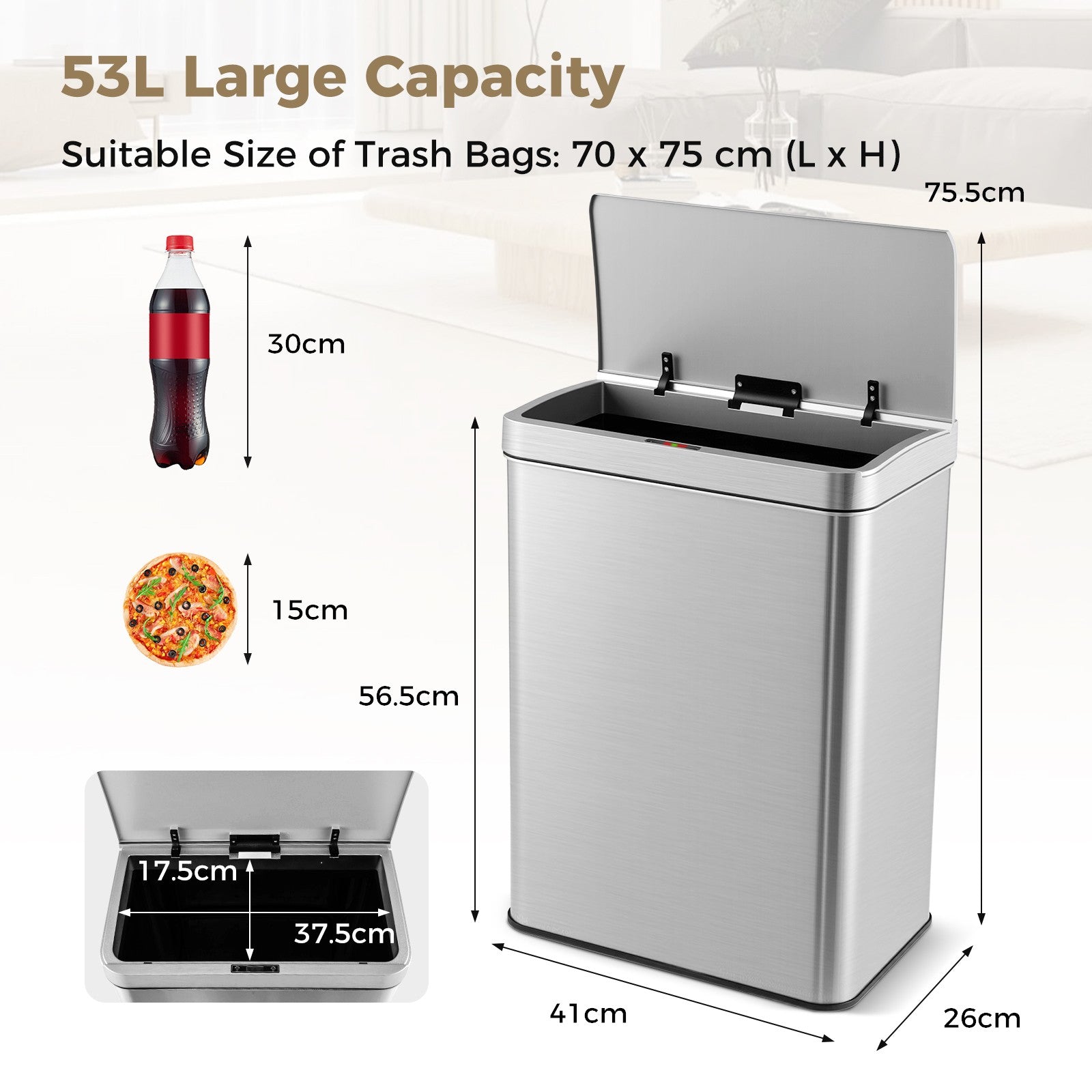 53L Automatic Trash Can Motion Sensor Garbage Can Stainless Steel Sliver