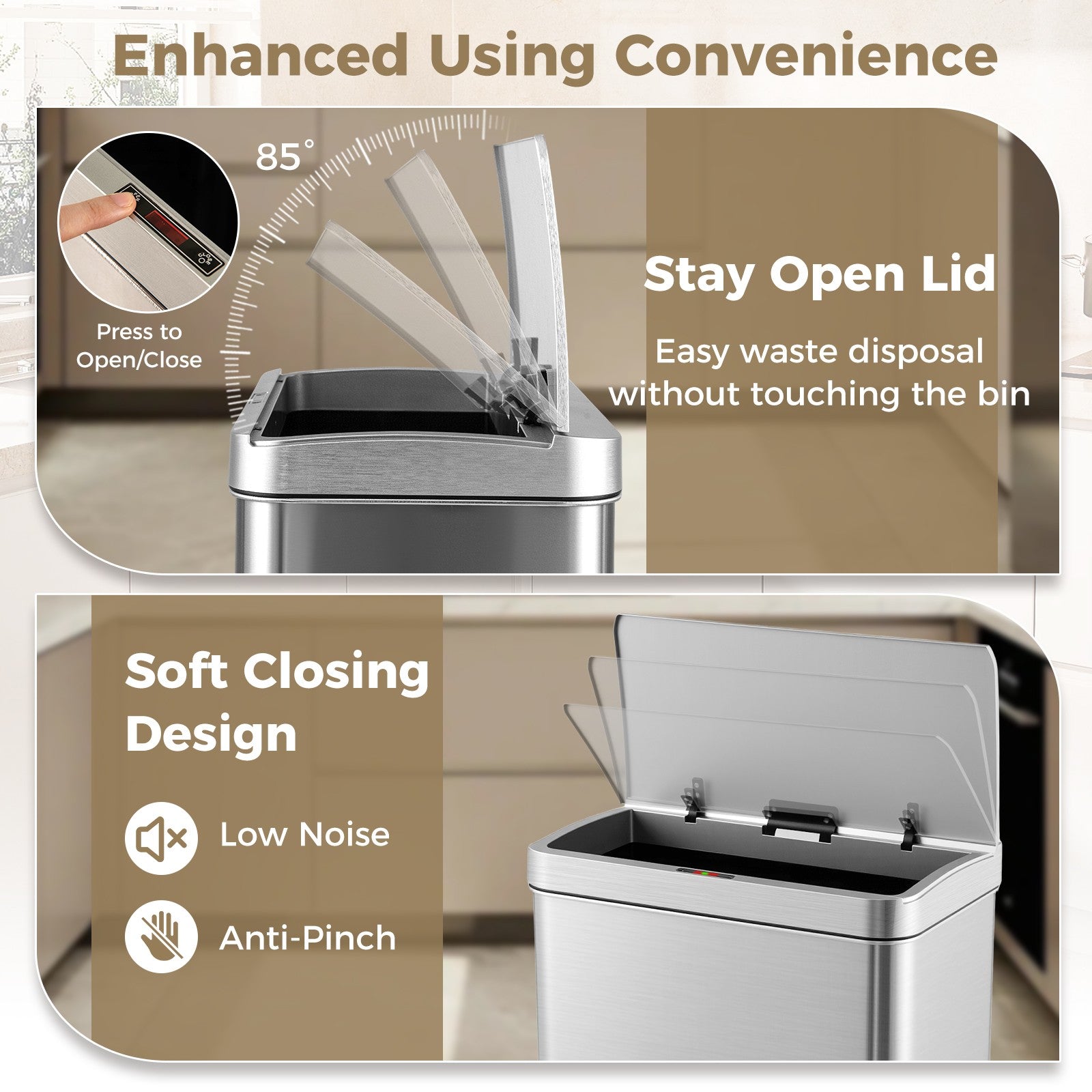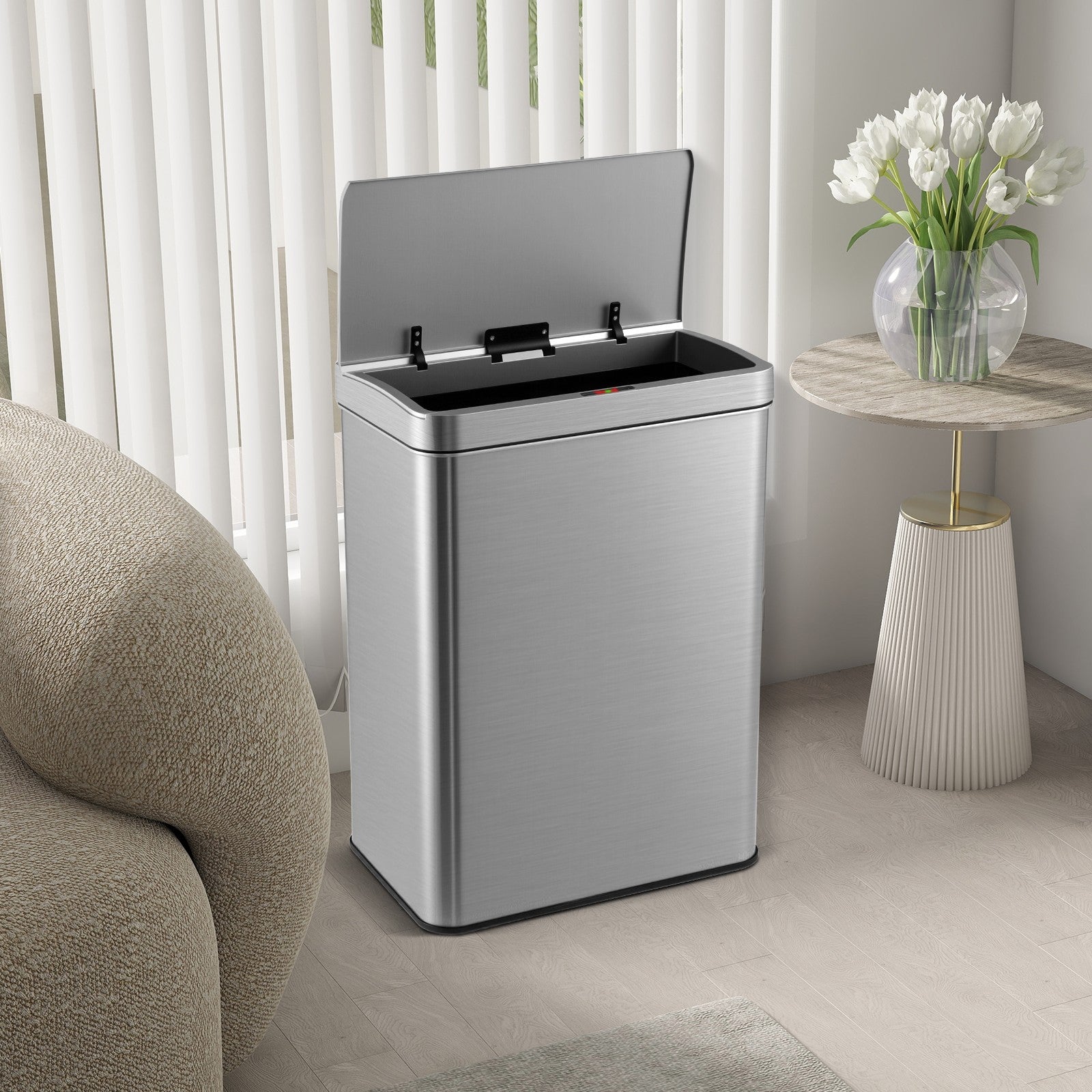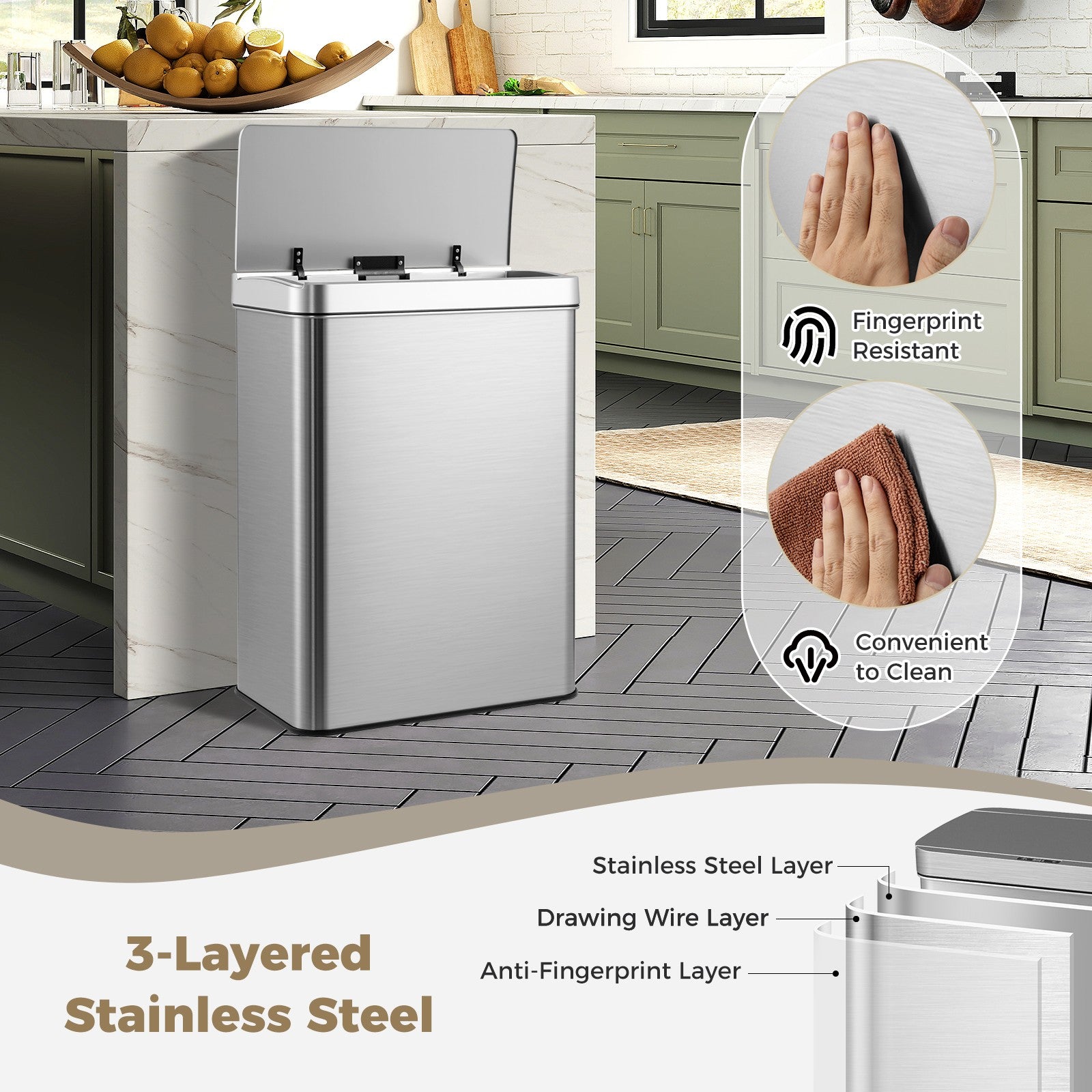 53L Automatic Trash Can Motion Sensor Garbage Can Stainless Steel Sliver