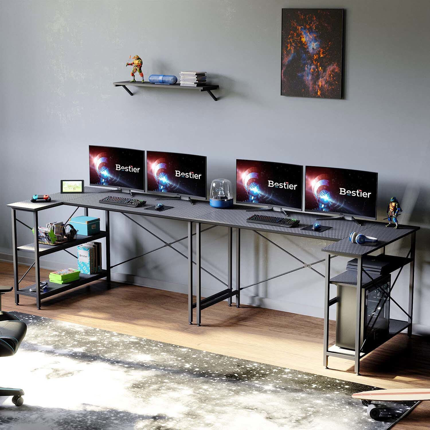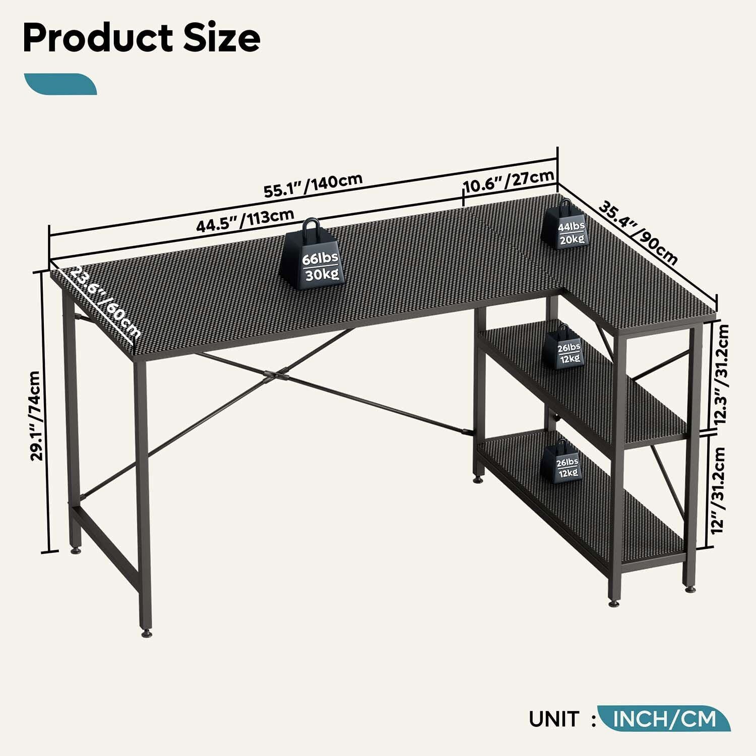 55'' L-Shaped Computer Desk Work Station Home Office Writing Table With Shelves