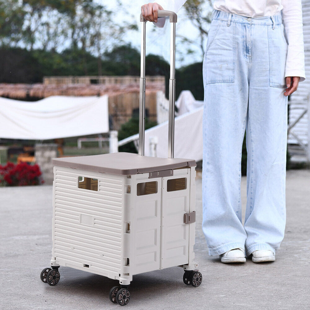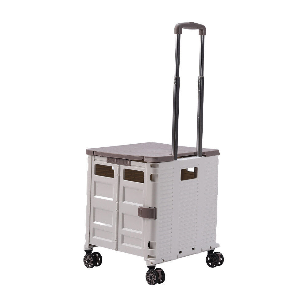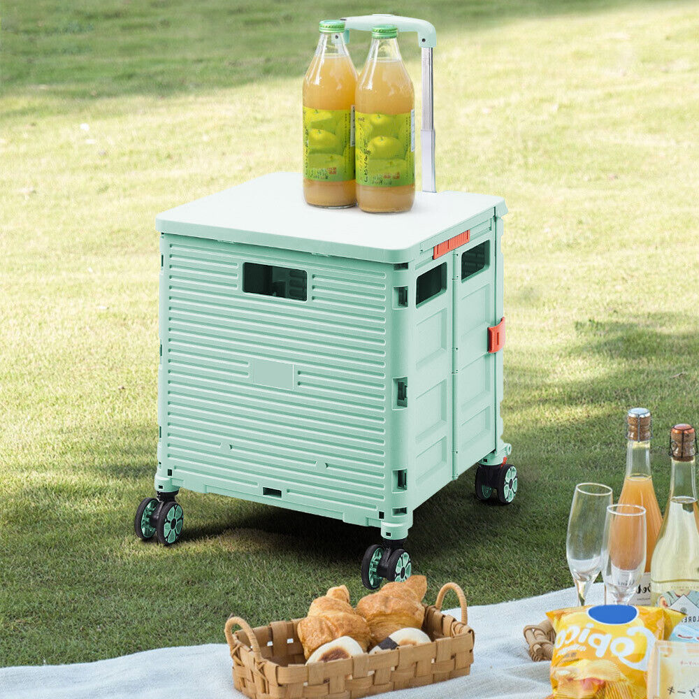55L Folding Trolley Crate Boot Cart Mobile Shopping Camping Picnic Storage Box