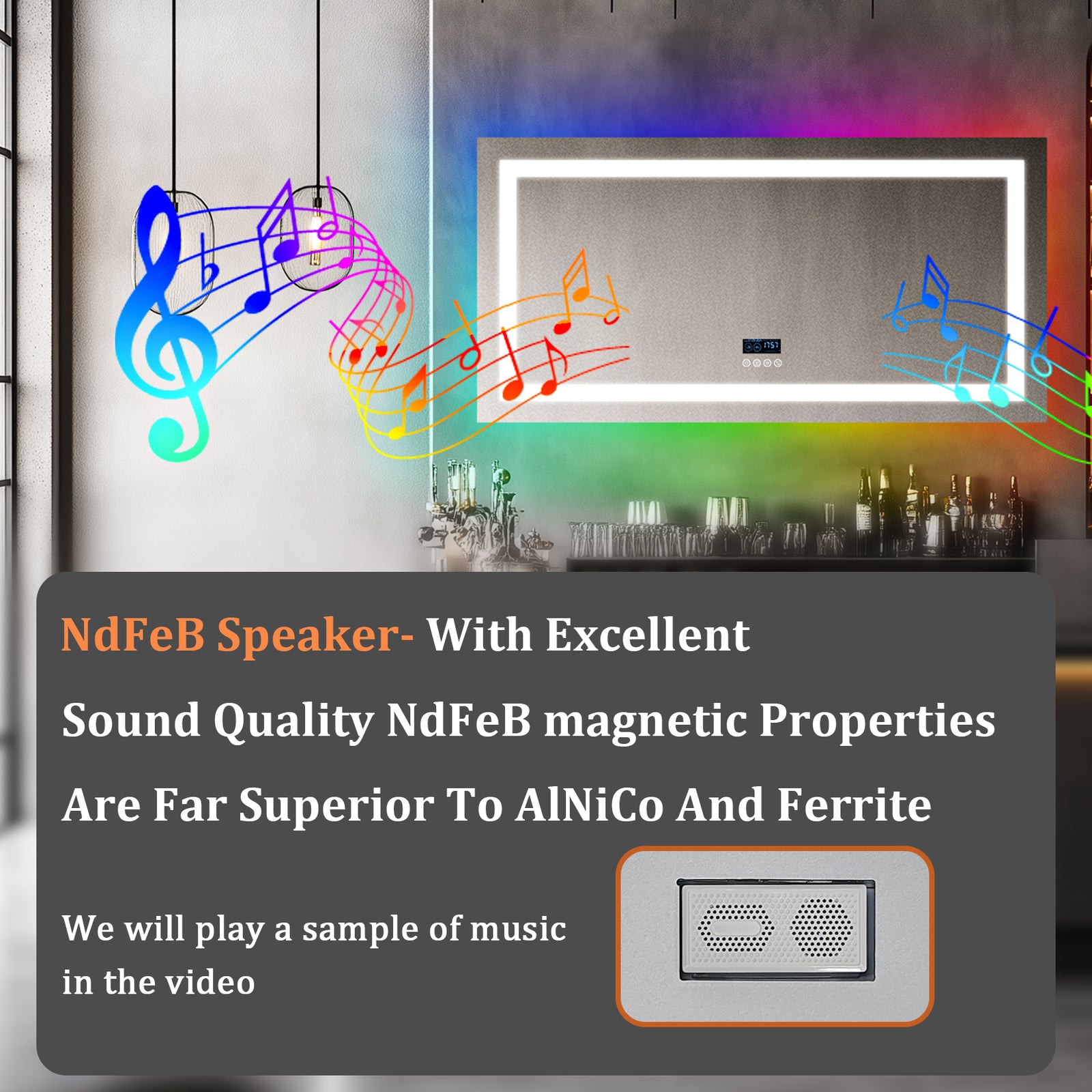 56x28 inch LED Bathroom Mirror Front Light + RGB Backlit Bluetooth Vanity Mirror
