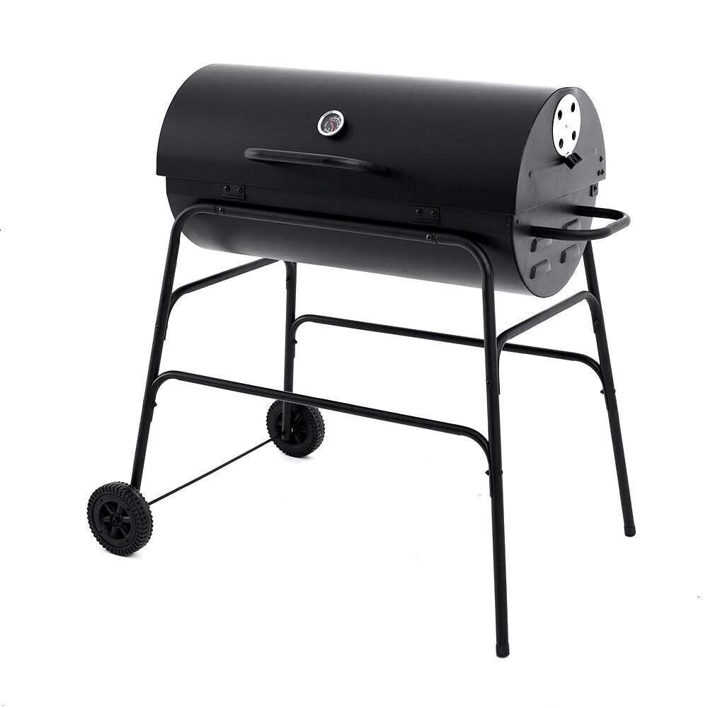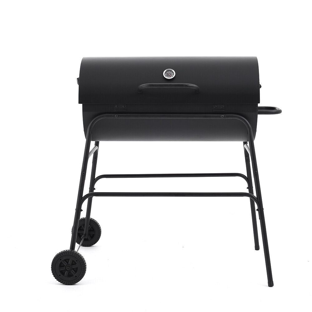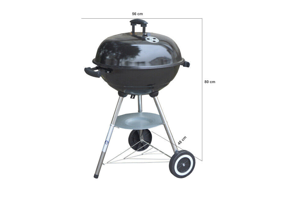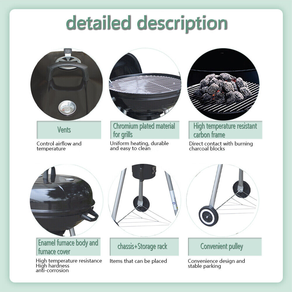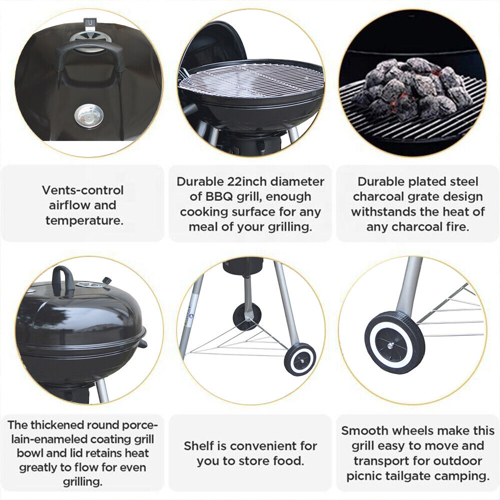 57cm Charcoal Grill BBQ with Thermometer, Stand Wheels& Cooker with Porcelain