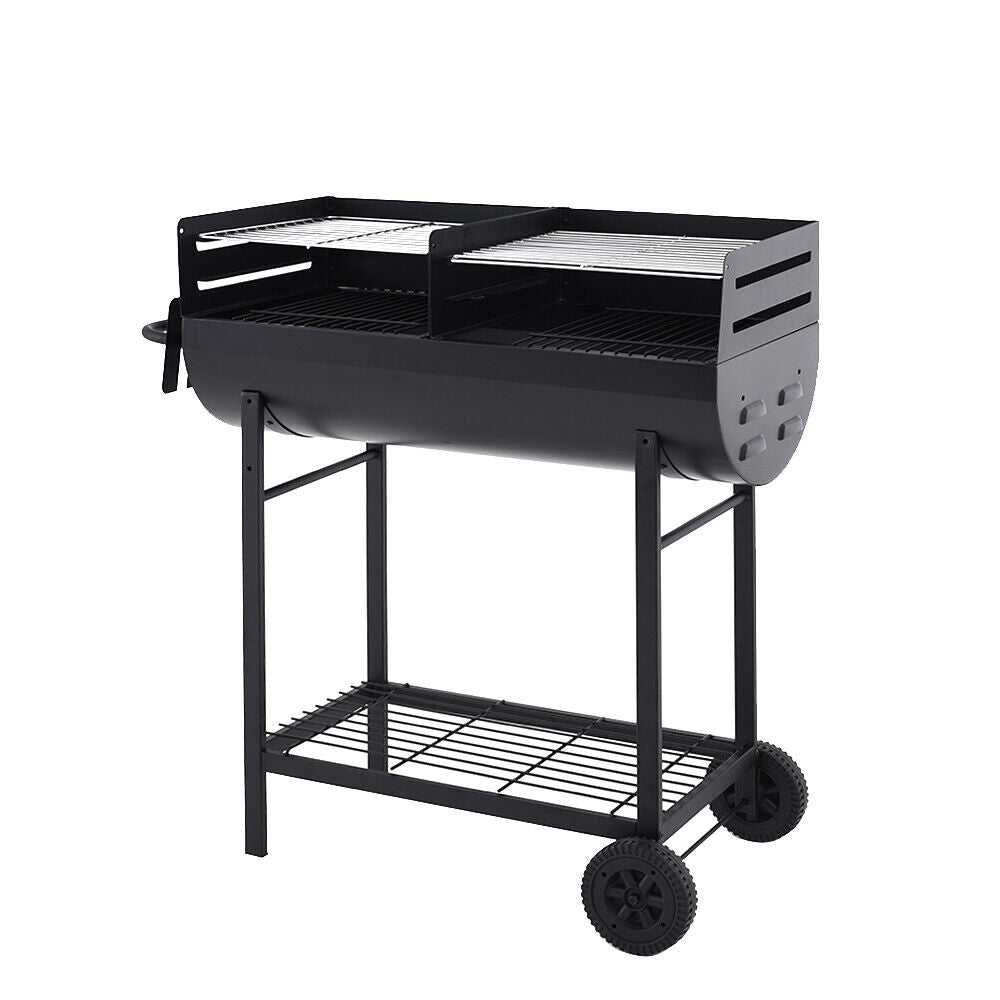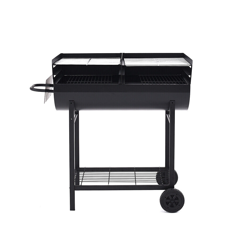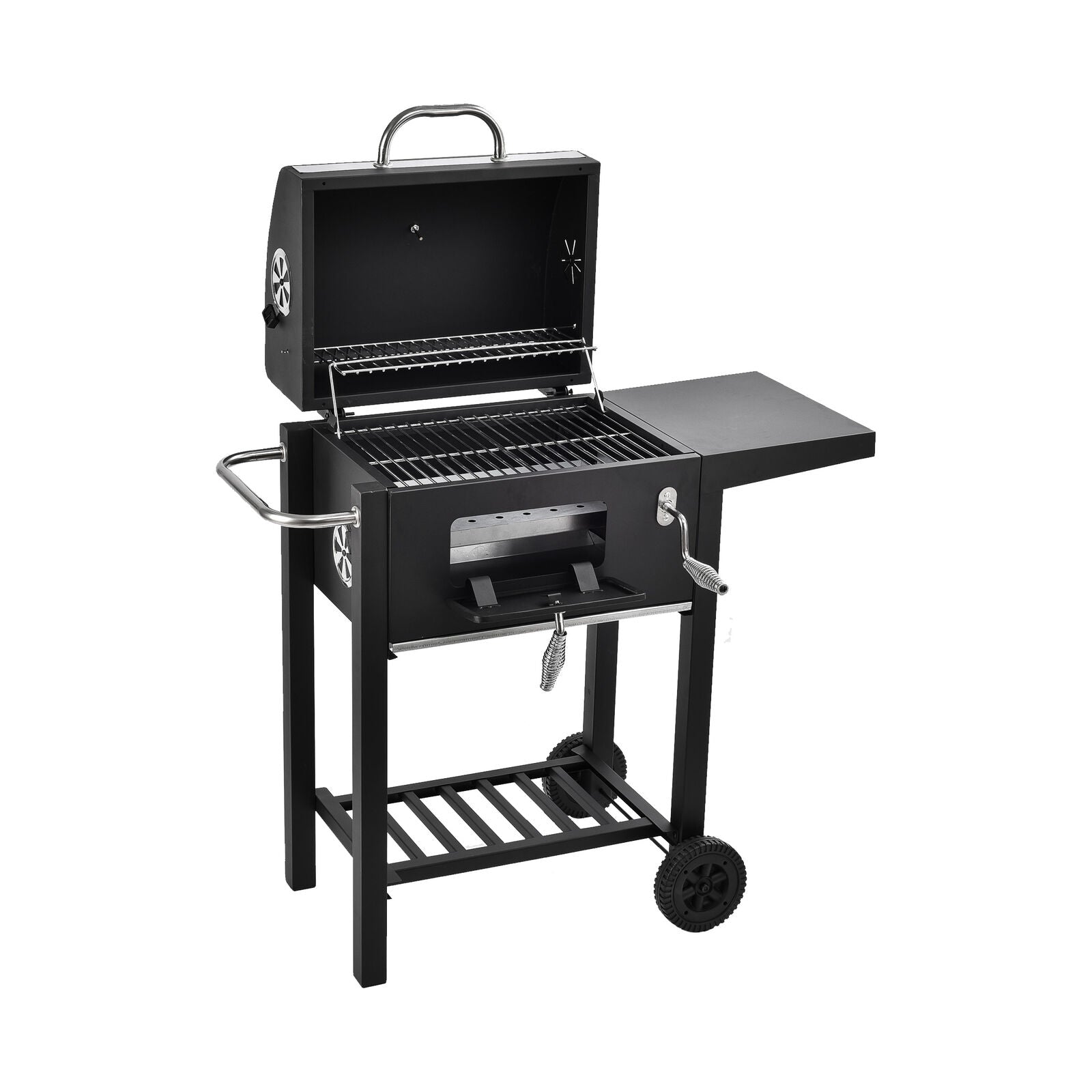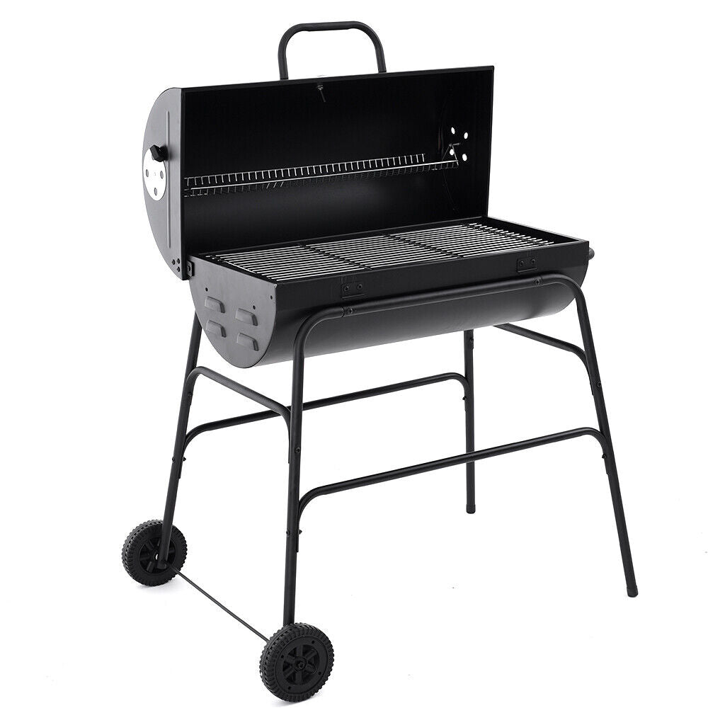 57cm Charcoal Grill BBQ with Thermometer, Stand Wheels& Cooker with Porcelain