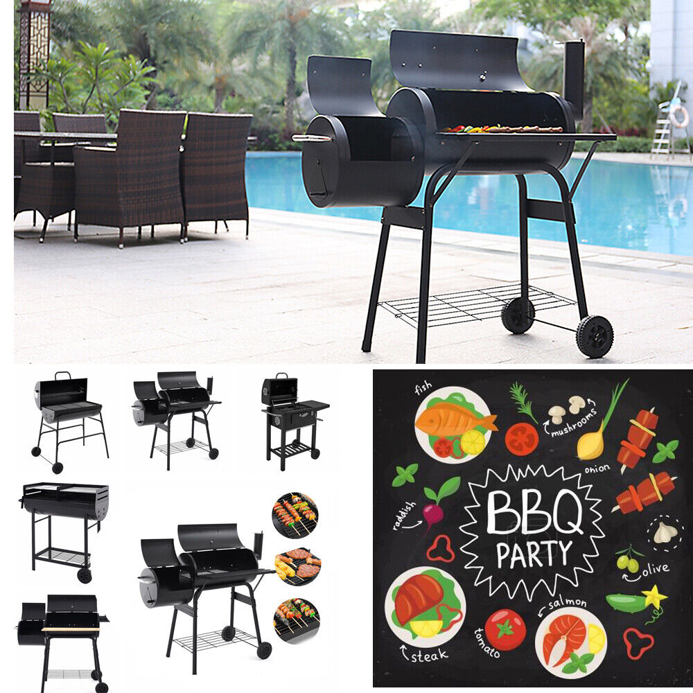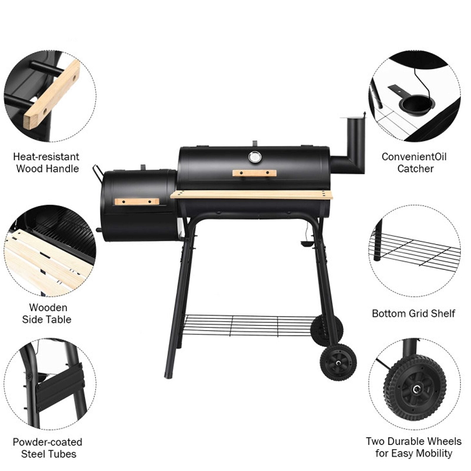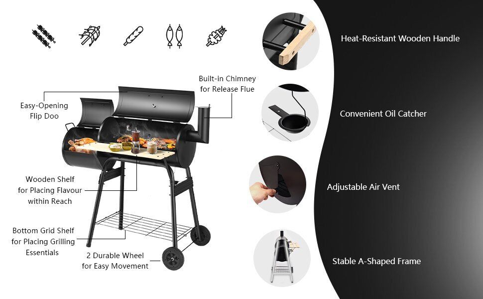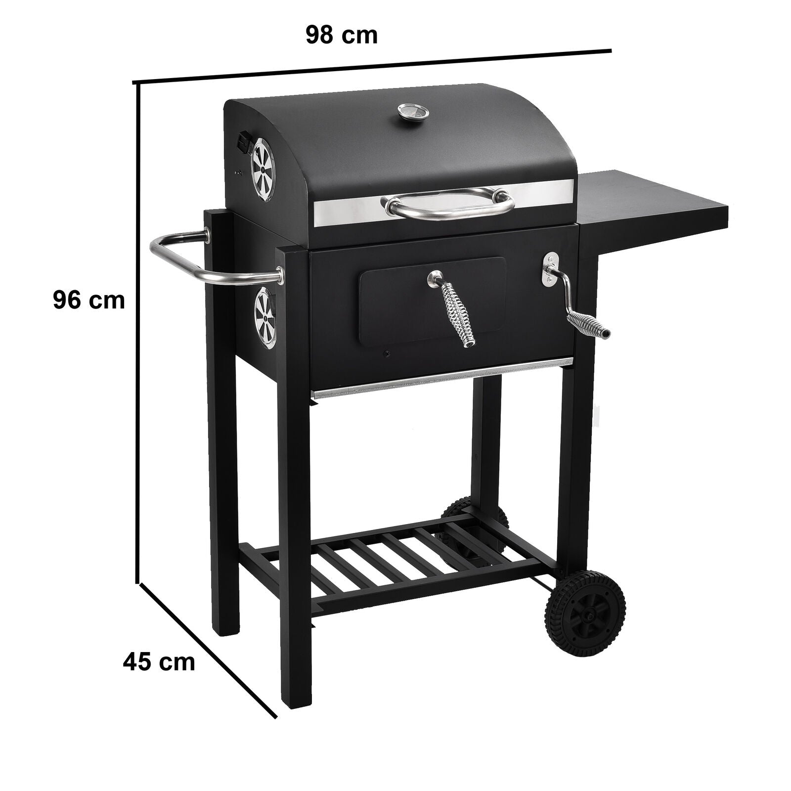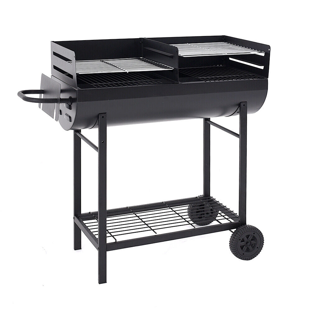 57cm Charcoal Grill BBQ with Thermometer, Stand Wheels& Cooker with Porcelain