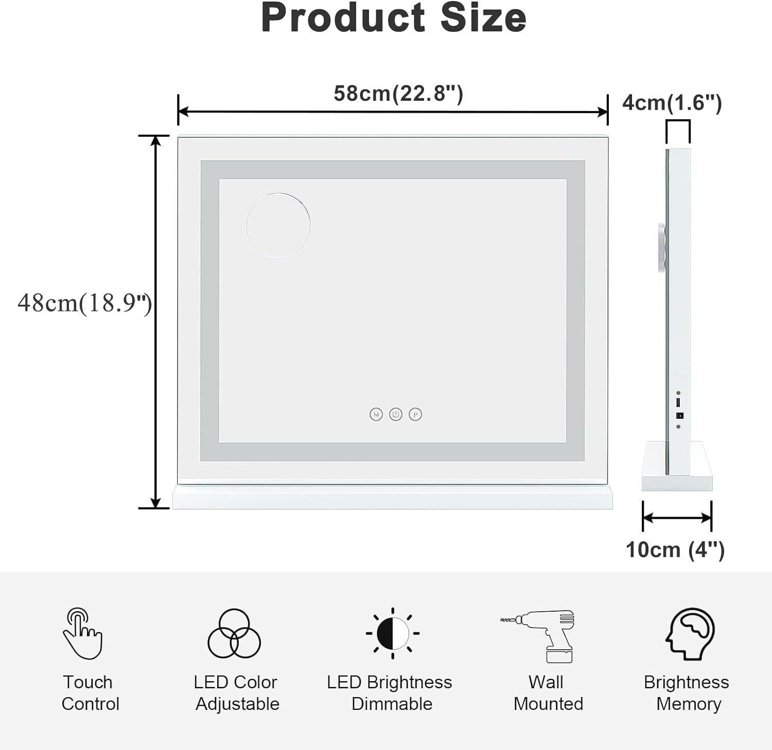 58 x 48 cm Hollywood Light Up Mirror Touch Screen Control Vanity Make Up Mirror